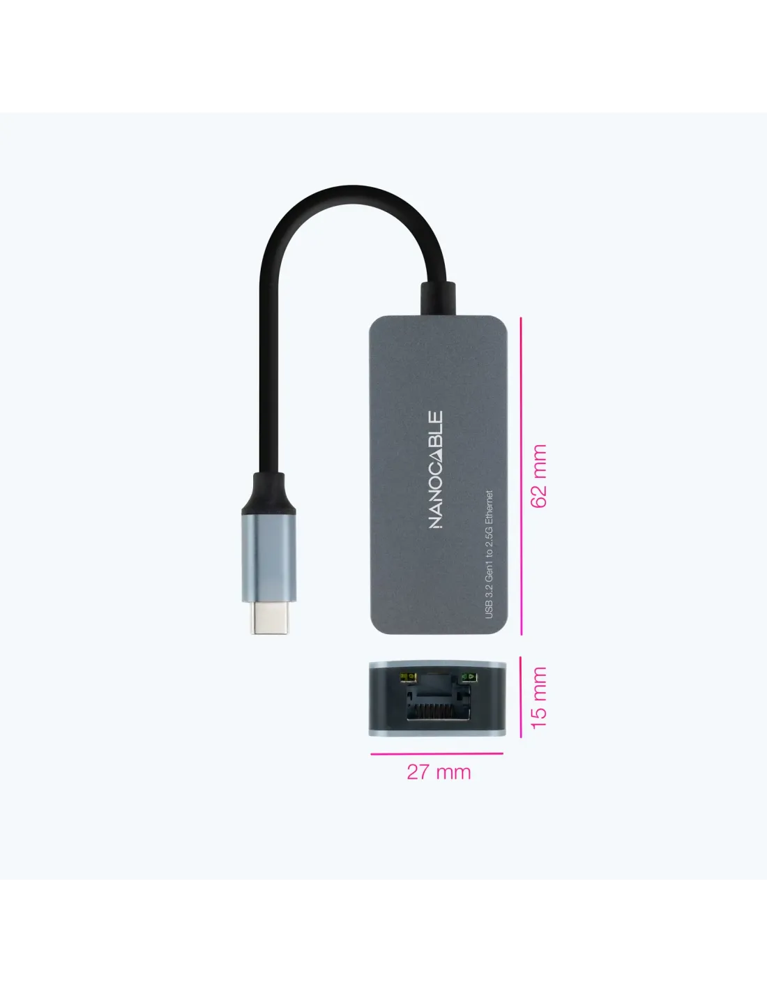 NANOCABLE CONVERSOR USB-C 3.2 GEN1 ETHERNET 2.5G GRIS 15 CM