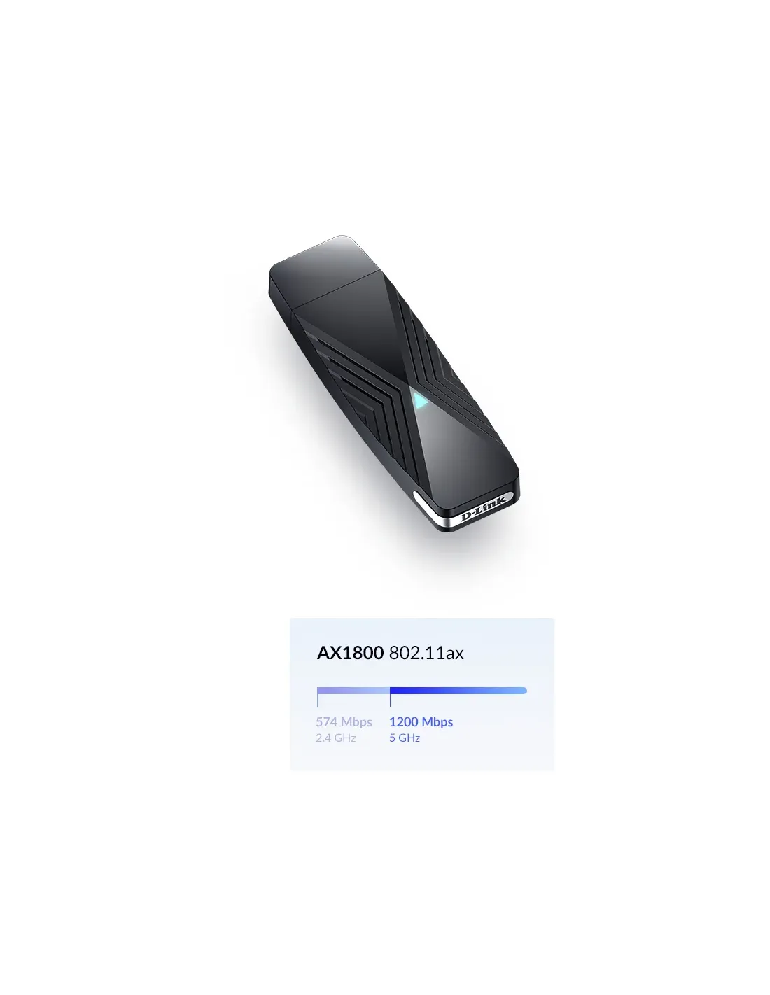 Adaptador Dongle USB a Wi-Fi 6 1800 MbpsDWA-X1850Velocidades de Wi-Fi 6 de doble banda de hasta 1.8GbpsMU-MIMO de alto ancho de bandaConectividad eficiente y estable con OFDMAUSB 3.02 portátil y plug-and-playSeguridad inalámbrica de última generación WPA3EspecificacionesConectividadWi-Fi 802.11ax 6InterfazUSB 3.2Velocidad inalámbrica1200Mbps 5GHz574 Mbps 2,4 GHztipo de dispositivoAdaptador wifi USB