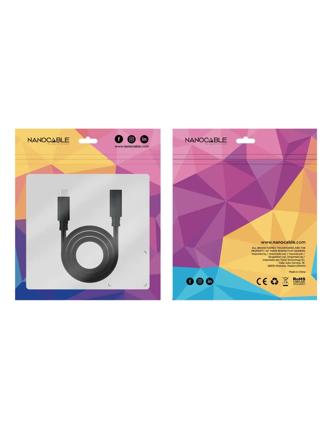 Cable Alargador USB Tipo-C 3.2 Nanocable 10.01.4500/ USB Tipo-C Macho - USB Tipo-C Hembra/ 50cm/ Negro