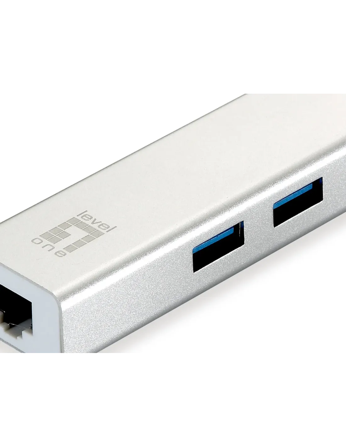 LevelOne USB-0503. Tecnología de conectividad: Alámbrico, Interfaz de host: USB, Interfaz: Ethernet. Rango máximo de transferencia de datos: 1000 Mbit/s. USB con suministro de corriente. Color del producto: Plata, Blanco