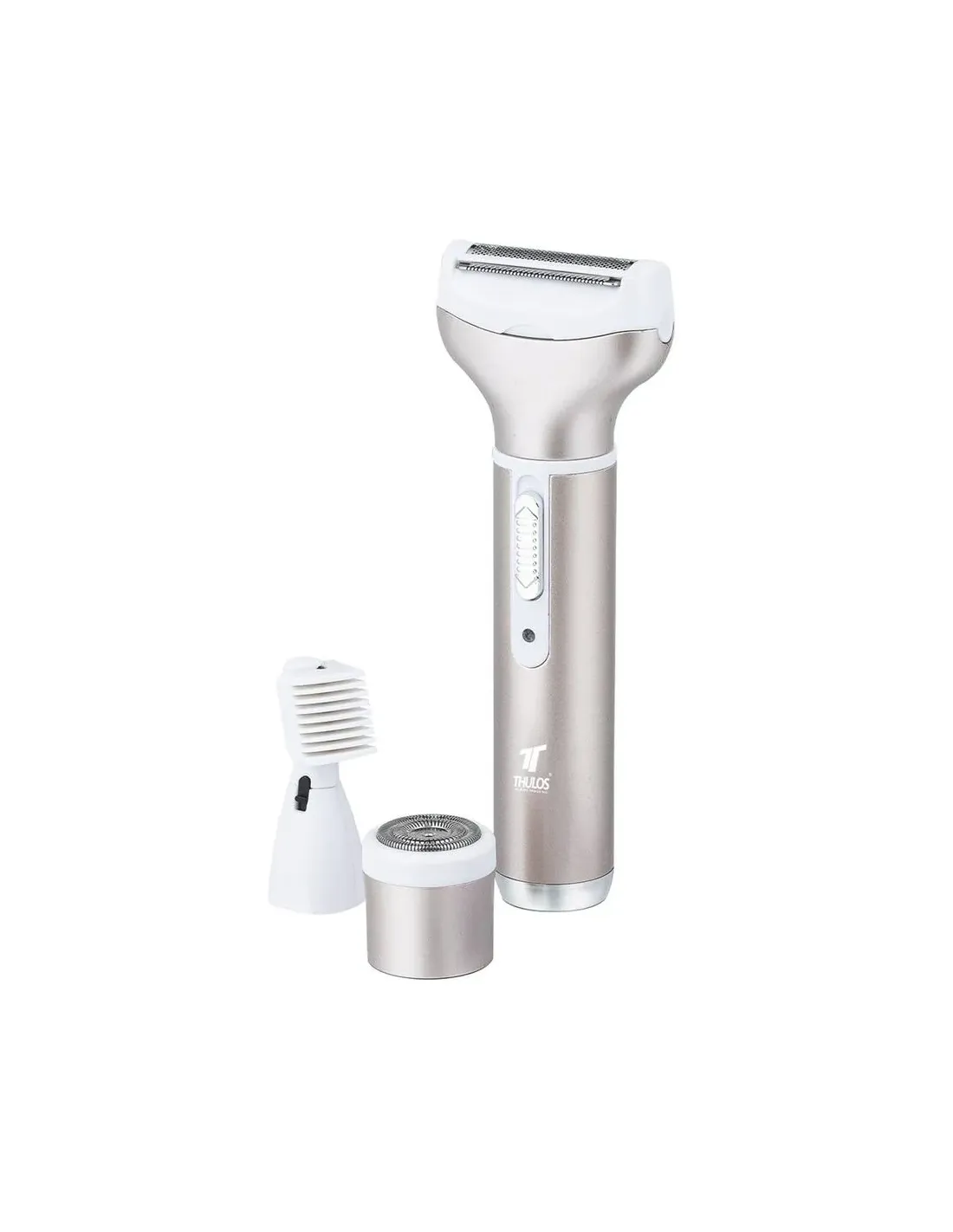 DescripciónAfeitadora Recargable 4 en1. THULOS TH-BY104 en 1: Depiladora de cejas, Depiladora corporal, Depiladora de nariz y orejas, Depiladora facial.Tiempo de carga: 8 horas.Autonomía: 60 minutos.Incluye: Cepillo de limpieza y cable de carga.EAN: 8436588775122EMBALAJEUnidades por caja: 50.Peso bruto: 10 Kg.Peso neto: 9.5 Kg.Dimensiones: 710*410*190 mm.