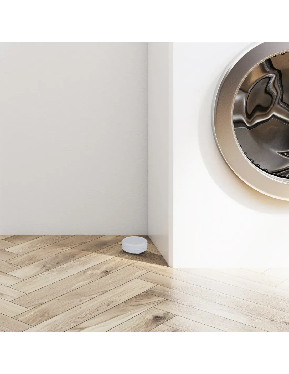 Para probar la alarma de agua, póngala en un plato con algo de agua y la alarma sonará. La alarma de agua se puede colocar en cualquier parte del suelo, por ejemplo, en el sótano o debajo del fregadero. Con una altura de tan solo 2,5 cm, la alarma de agua es ultradelgada. Por lo tanto, podrá colocarla debajo de la lavadora.