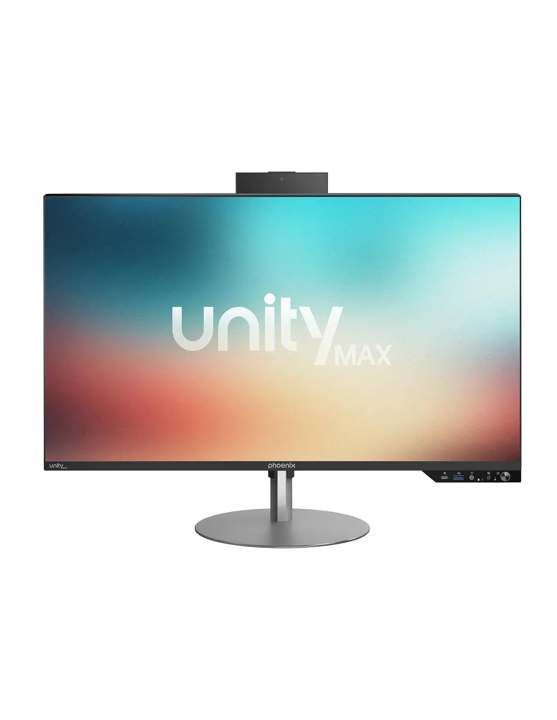 El AIO Unity-Max de 27 pulgadas de Phoenix redefine el concepto de ordenador todo-en-uno. Con un diseño minimalista y sofisticado, integra una pantalla Full HD IPS de gran nitidez en un formato compacto que ahorra espacio sin renunciar a presta- ciones de alto nivel. En su interior late un potente procesador Intel® Core? i5 de 14ª generación, respaldado por 16 GB de memoria DDR5 y un rápido almacenamiento SSD de 1 TB, garantizando un arranque instantáneo, multitarea fluida y un rendimiento sólido para trabajo, estudio y entretenimiento.Pensado para cubrir cualquier necesidad, el Unity-Max incorpora 2 puertos USB-A 3.2 Gen 2, 2 puertos USB-A 2.0, 1 puerto USB-C con carga rápida, entradas y salidas de línea, puerto HDMI, puerto VGA, LAN Gigabit Ethernet de 1Gbps, lector de tarjetas TF, Wi-Fi 5 y Bluetooth 5. Además, su webcam ocultable de 5 MP ofrece una calidad de imagen sobresaliente para videollamadas nítidas y profesionales. Este abanico de opciones lo convierte en un centro de trabajo y entretenimiento versátil, listo para adaptarse a cualquier entorno.La experiencia de uso va más allá de la potencia y la conectividad. En la parte trasera, el aro de luz blanca con retroiluminación suave reduce la fatiga ocular durante sesiones prolongadas, mientras que su base ajustable en altura e inclinación garantiza una postura ergonómica óptima. El Phoenix AIO Unity-Max no solo es una herramienta de alto rendimiento, sino también un equipo que cuida tu confort y productividad, uniendo tecnología, diseño y funcionalidad en un solo dispositivo.Desde la edición de fotos y vídeos hasta la gestión de múltiples tareas en entornos exigentes, el Unity-Max ofrece la flexibilidad necesaria para adaptarse a tu flujo de trabajo. Su capacidad para manejar software profesional y aplicaciones multimedia lo convierte en la opción perfecta tanto para el hogar como para la oficina, ofreciendo siempre una experiencia fluida y sin interrup- ciones.A pesar de su potencia, este All-in-One está diseñado para optimizar el consumo energético, reduciendo costes y cuidando del medio ambiente. Su sistema de ventilación silenciosa garantiza un funcionamiento estable incluso bajo cargas intensas, mientras que su arquitectura moderna asegura compatibilidad con las últimas actualizaciones de software y periféricos.