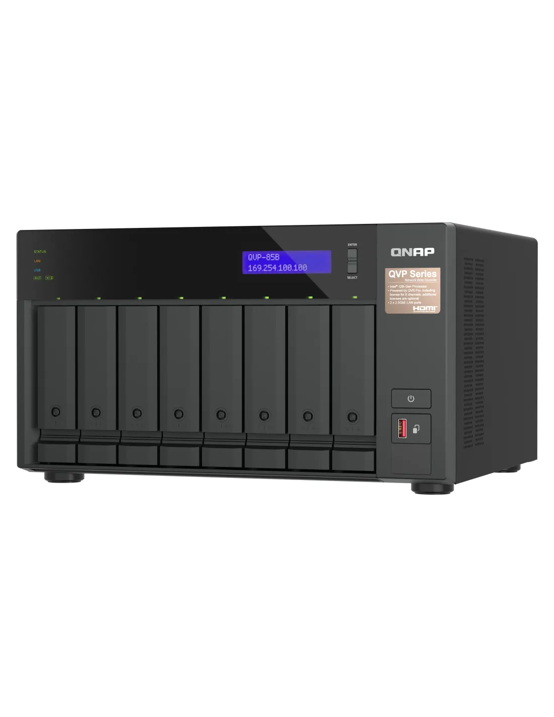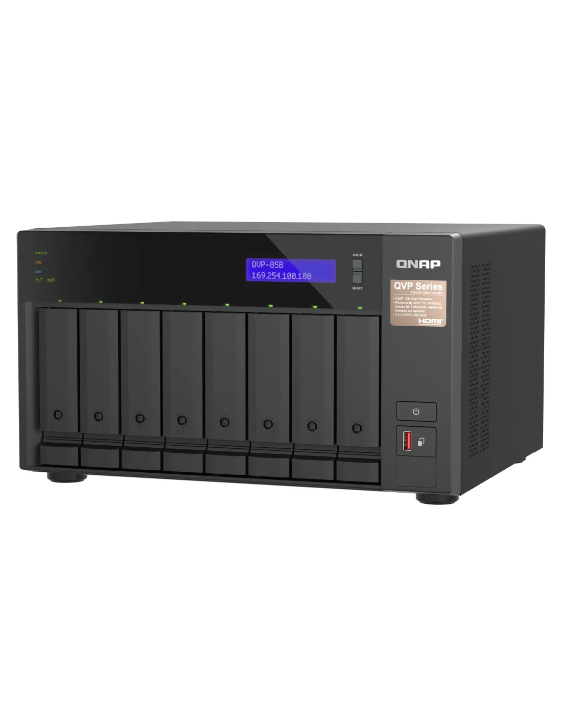 QNAP QVP-85B servidor de almacenamiento NAS Torre Intel® Core™ i5 32 GB DDR4 Unidad de disco duro QVR Pro Negro