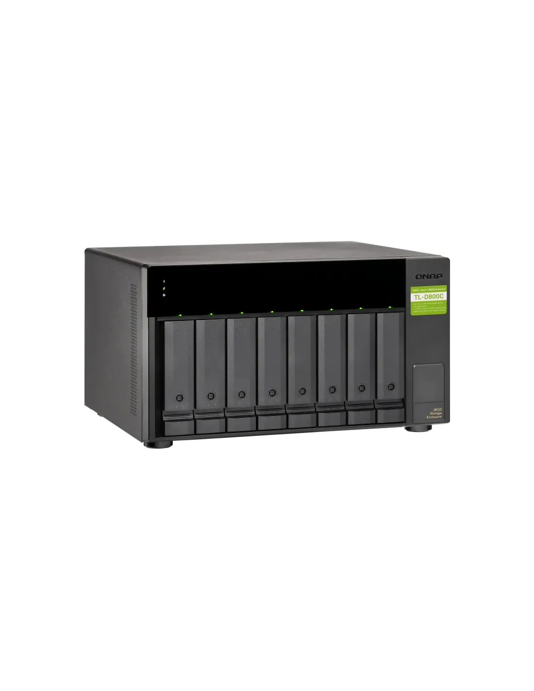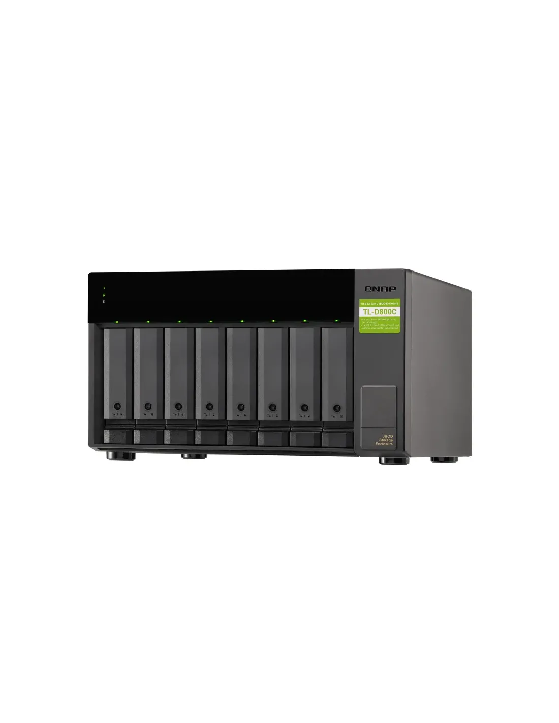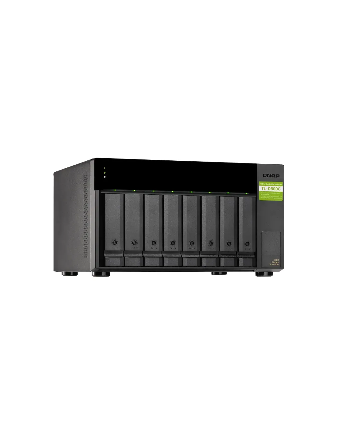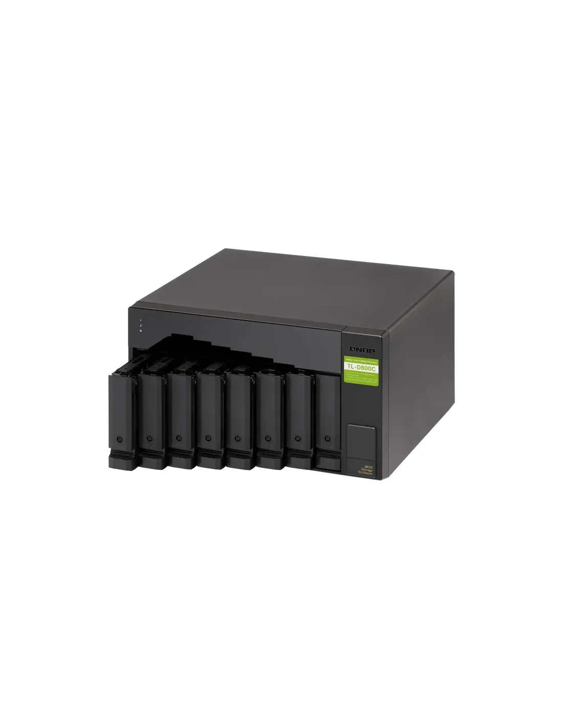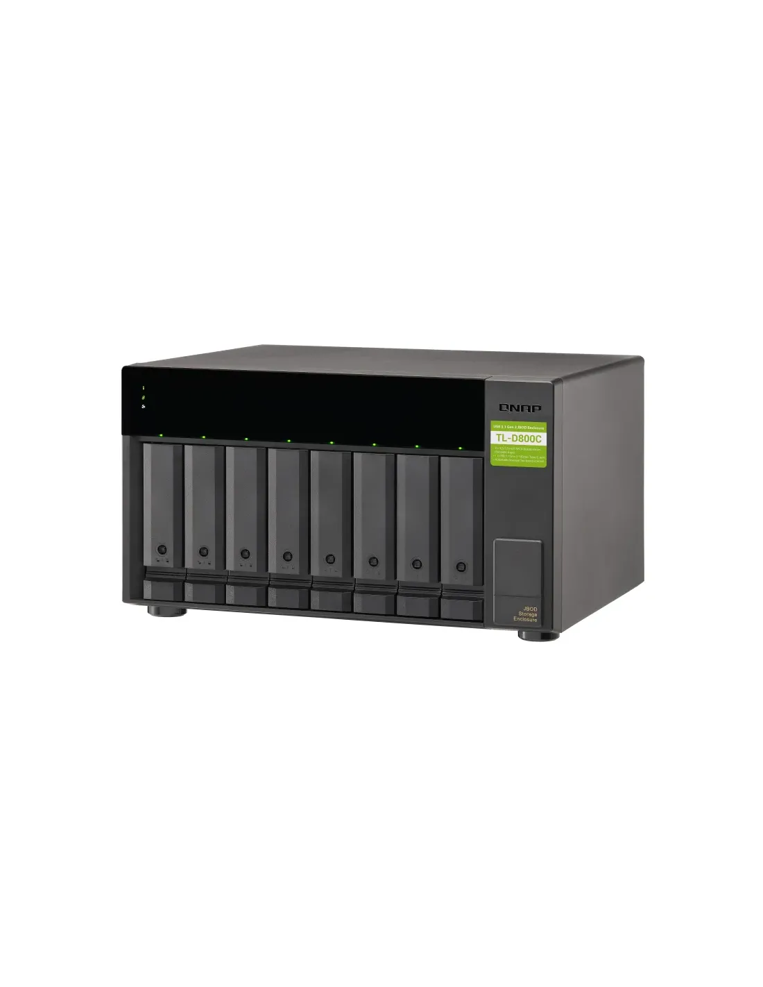 QNAP TL-D800C. Tipo de producto: Carcasa de disco duro/SSD. Número de unidades de almacenamiento compatibles: 8, Tamaño de la unidad de almacenamiento: 2.5/3.5", Interfaces de disco de almacenamiento soportados: Serial ATA II, Serial ATA III. Velocidad de transferencia de datos: 6 Gbit/s. Hot-swap. Color del producto: Negro, Gris. Conector USB: USB Tipo C