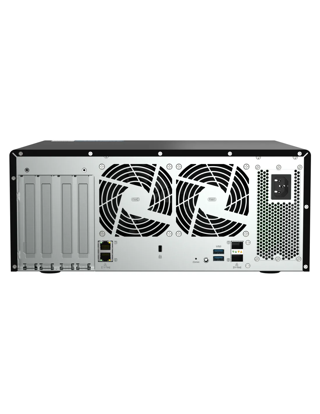Potente NAS all-flash U.2 NVMe/ SATA de 12 bahías, incluyendo almacenamiento basado en ZFS y conectividad 25GbE, ideal para entornos de oficina, edición de vídeo 4K/8K colaborativa e intercambio de archivos (Admite el sistema QuTS hero o QTS)