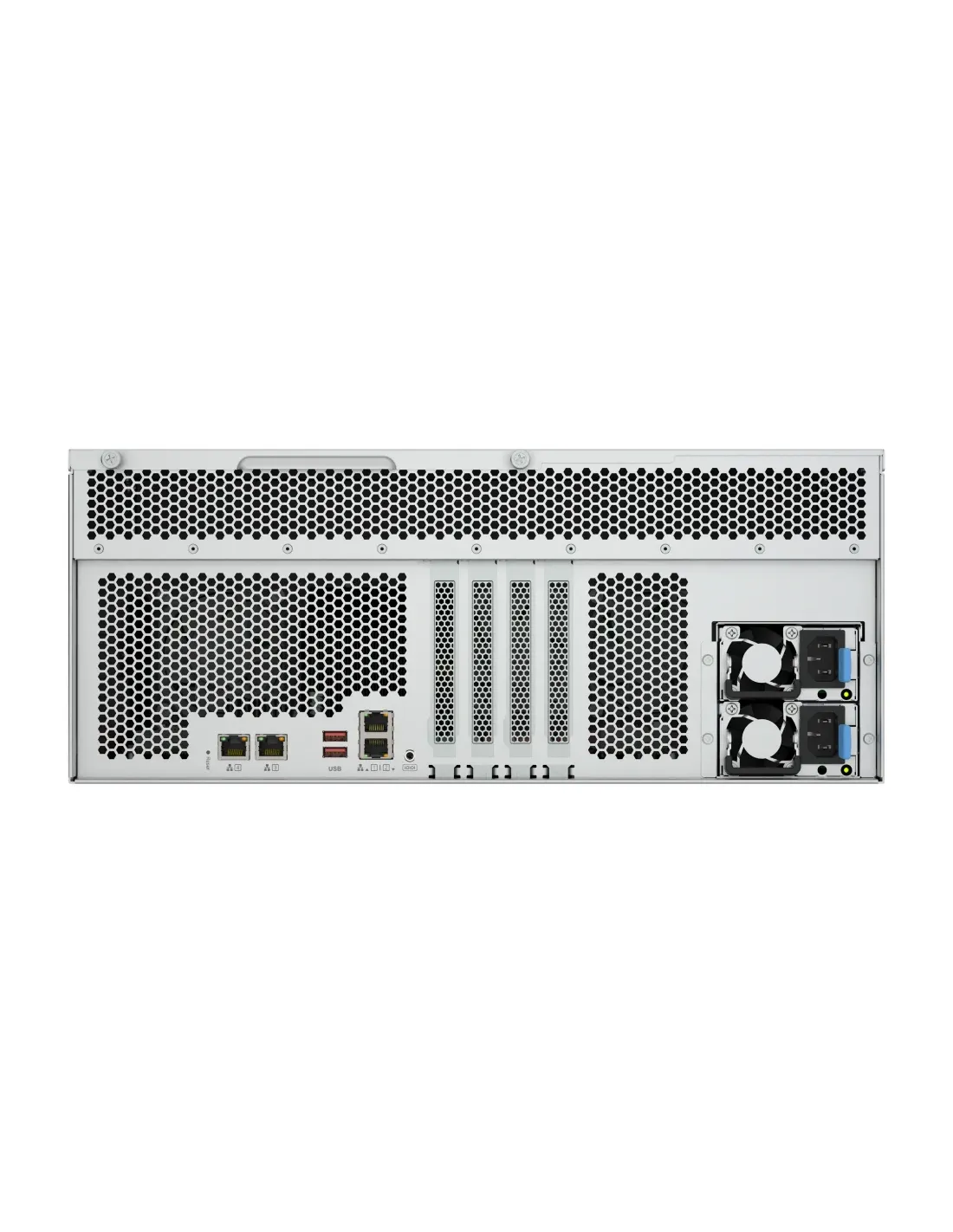 QNAP TS-h2477AXU-RP. Tipo: Servidor de almacenamiento. Tipo de chasis: Bastidor (4U). Clase del dispositivo: Pequeñas y medianas empresas. Familia de procesador: AMD Ryzen™ 7, Modelo del procesador: 7745. Memoria interna: 32 GB, Tipo de memoria interna: DDR5. Capacidad de almacenamiento total instalado: 0 TB. Sistema operativo instalado: QNAP QTS