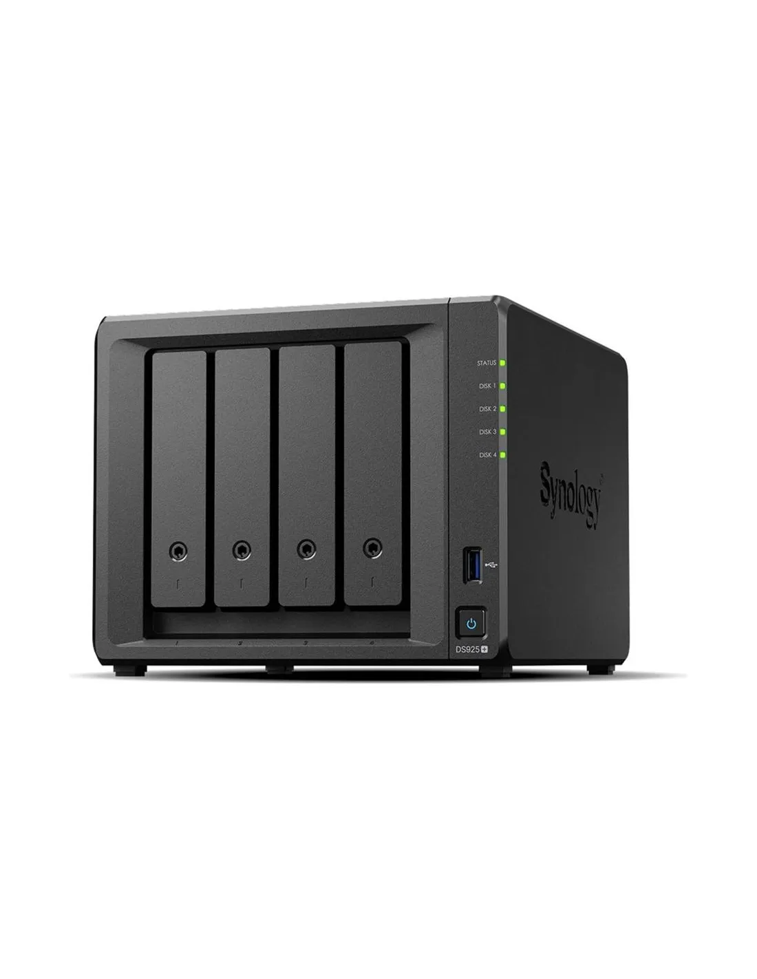 Gracias a sus 4 bahías de disco con soporte para unidades de 2.5"/3.5" intercambiables en caliente y compatibilidad con hasta 200 TB de almacenamiento, el DS925+ permite adaptar la configuración según tus necesidades. También incluye dos ranuras M.2 para cache SSD y diversas opciones RAID para optimizar rendimiento y seguridad.