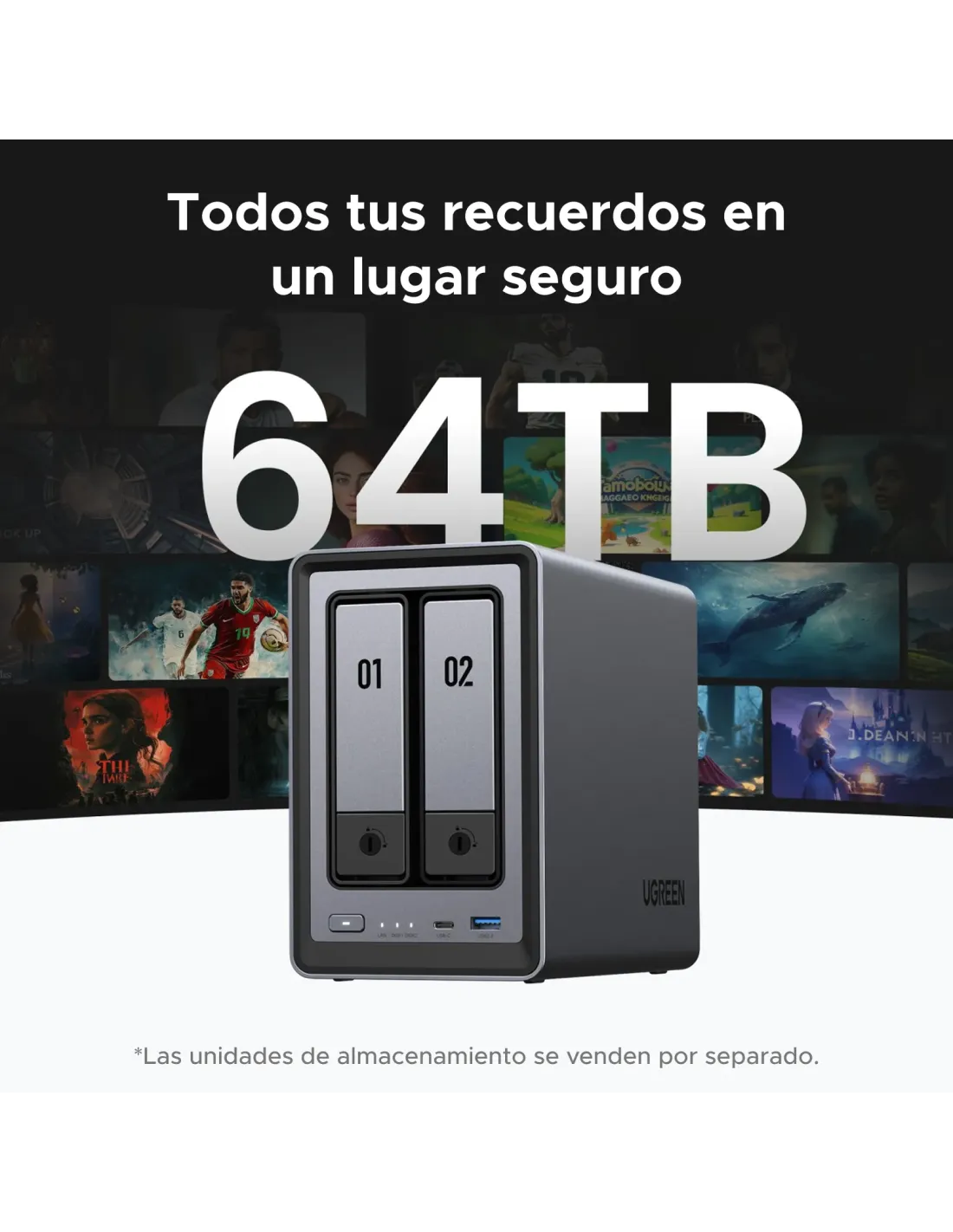 Ugreen NASync DXP2800 NAS System 2-Bay Compacto Intel® N N100 8 GB DDR5 0 TB UGOS Pro Negro