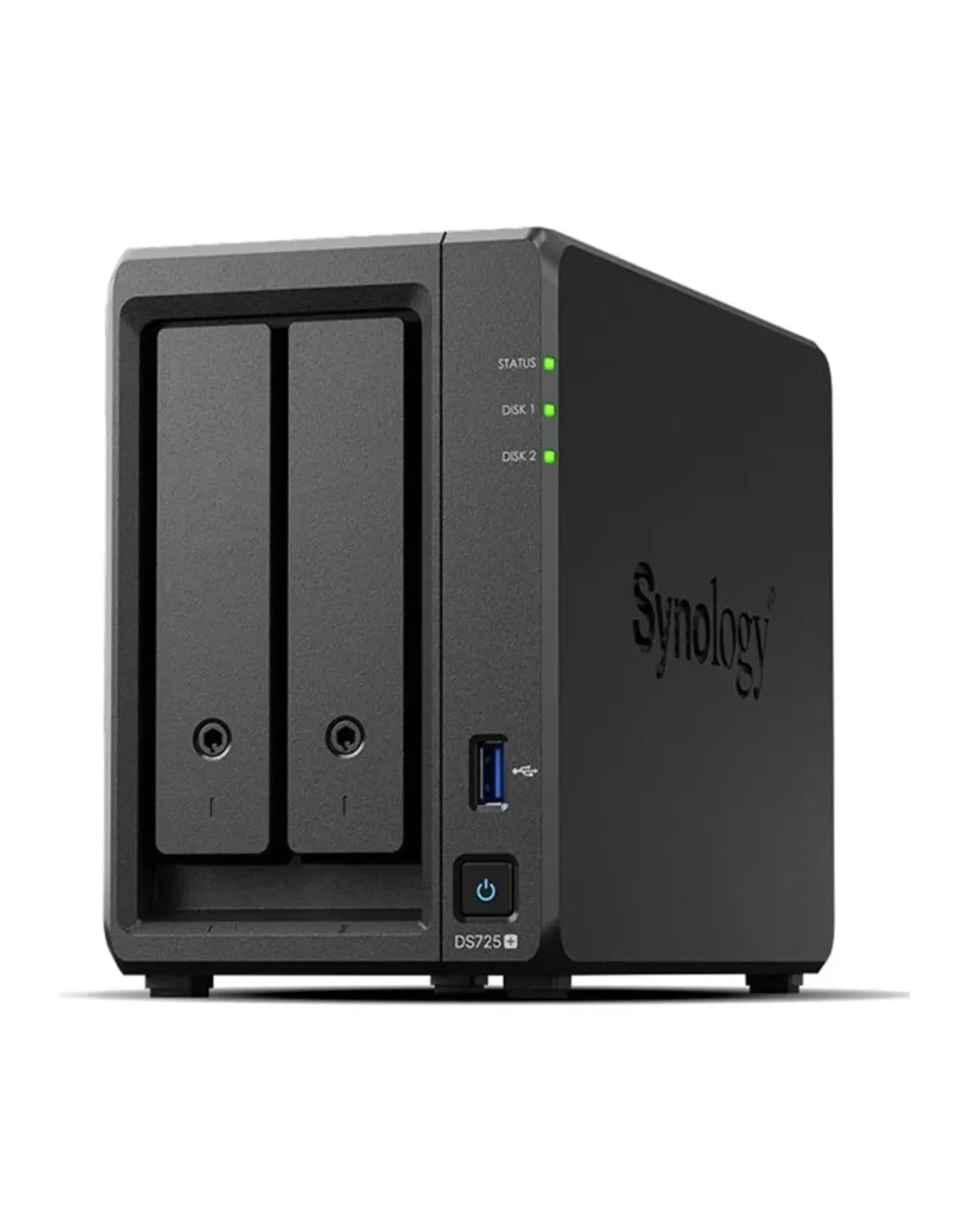 Características del Synology DiskStation DS725+ con 2 bahías y 2 discos de 16TBEl Synology DS725+ es un servidor NAS compacto y potente, ideal para usuarios profesionales, creadores de contenido y pequeñas empresas que buscan una solución de almacenamiento segura, rápida y ampliable. Este modelo incluye 2 bahías con soporte para discos de 3.5"/2.5" y viene equipado con 2 unidades de 16TB, lo que permite configurar un entorno RAID con gran capacidad desde el primer momento. Gracias a su procesador AMD Ryzen y su sistema operativo DiskStation Manager, ofrece un rendimiento sobresaliente y una gestión intuitiva.Rendimiento y potencia para entornos exigentesDiseñado para ofrecer altas tasas de transferencia, el DS725+ alcanza velocidades de hasta 276 MB/s en lectura y 224 MB/s en escritura secuencial. Esto lo convierte en una opción ideal para tareas como backup empresarial, gestión de archivos multimedia o vigilancia en red.Procesador AMD Ryzen R1600 Dual-Core hasta 3.1 GHz4 GB de memoria RAM DDR4 ECC (ampliable hasta 32 GB)Compatible con cache SSD y TRIM para mejorar el rendimientoCapacidad de almacenamiento flexible y seguraEste modelo incluye 2 discos de 16TB y permite configuraciones RAID flexibles (RAID 0, 1, 5, 6, 10 y JBOD), adaptándose a tus necesidades de rendimiento y redundancia. También soporta la creación de hasta 32 pools de almacenamiento y 128 carpetas compartidas, ideal para estructuras organizativas complejas.Capacidad total instalada: 32 TB (2x16 TB)Capacidad máxima soportada: hasta 200 TBCompatible con discos duros SATA de 2.5"/3.5" y M.2 NVMe para cacheConectividad moderna y administración avanzadaEl DS725+ incorpora conexiones de red avanzadas que mejoran la velocidad y confiabilidad de las transferencias. Su sistema operativo DiskStation Manager ofrece un entorno intuitivo con funciones como sincronización de archivos, VPN, vigilancia, nube privada y mucho más.1 puerto RJ-45 2.5 GbE + 1 puerto RJ-45 1 GbE1 puerto USB 3.2 Gen 1 Type-A y 1 puerto de expansión USB-CAdmite hasta 40 cámaras IP con reconocimiento facial y de objetosDiseño eficiente, silencioso y preparado para el futuroCompacto y silencioso, el NAS cuenta con un ventilador de 92 mm y una emisión sonora de tan solo 17.9 dBA. Su bajo consumo energético y funciones como encendido programado o recuperación tras fallo lo hacen perfecto para uso continuo 24/7.Consumo en funcionamiento: 20.41 W / en espera: 7.87 WCompatible con ranura de seguridad KensingtonCertificaciones: RoHS, FCC, DLNA, entre otrasOtras especificacionesMemoria instalada: 4 GB DDR4 ECC2 ranuras M.2 2280 disponiblesRanura libre SO-DIMM para ampliación de RAMSistema de archivos y protocolos compatibles: SMB, AFP, NFS, WebDAV, CIFS, FTP, iSCSISoporte para autenticación Kerberos, ACL, Rsync y sincronización de carpetasCompatible con Wake-on-LAN (WOL) y Wake-on-WAN (WOW)Incluye 2 cables de red, alimentación y kit de montajeTemperatura de funcionamiento: 0 °C a 40 °C / Humedad: 5% - 95%Garantía limitada del fabricante: 3 años