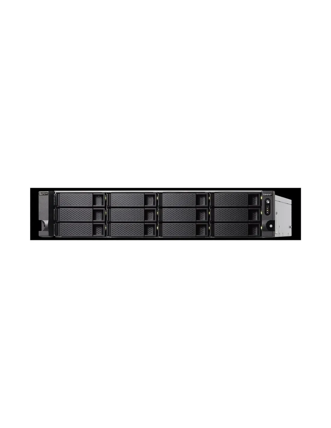 -USO RECOMENDADOServidor NAS profesional ideal para empresas que requieren alta capacidad de almacenamiento, rendimiento constante, redundancia energética y amplias opciones de conectividad y virtualización.-GENERALTipo de dispositivo: Servidor NASTipo de caja: Montaje en bastidor - 2UAnchura: 48,2 cmProfundidad: 54,97 cmAltura: 8,83 cmPeso (sin HDD): 12,73 kgCapacidad total de almacenamiento: 0 GBNúmero de módulos instalados / máximos: 0 / 18-PROCESADOR Y MEMORIAProcesador: Intel Xeon D-1622 2.6 GHz (4 núcleos, hasta 3.2 GHz)RAM instalada: 32 GB DDR4 ECCRAM máxima soportada: 128 GBCaracterísticas: ECC, sin memoria intermediaMemoria flash instalada: 5 GBNúmero de procesadores instalados: 1-ALMACENAMIENTOTipo de controlador: RAIDInterfaz: SATA 6Gb/sNiveles RAID: RAID 0, 1, 5, 6, 10, 50, 60, TP, JBOD-EXPANSIÓN / CONECTIVIDADBahías de expansión:- 12 x 2.5"/3.5" intercambio en caliente (libres)- 6 x 2.5" intercambio en caliente (libres)Ranuras de expansión:- 1 x PCIe 2.0 x4 (libre)- 1 x PCIe 3.0 x8 (ocupada)- 1 x PCIe 3.0 x4 (libre)-CONECTIVIDAD4 x RJ-45 2.5GbE2 x SFP+ Ethernet 10Gb2 x USB 3.2 Gen 1 Type-AConectividad host: 2.5 Gigabit Ethernet / 10 Gigabit Ethernet-SOFTWARE Y SISTEMAS COMPATIBLESSistema operativo: QNAP QuTS hero h5.0.0Sistemas operativos compatibles: Windows 7/8/10, Windows Server 2008 R2/2012/2012 R2/2016/2019, macOS X 10.10 o posterior, Ubuntu 14.04, CentOS 7.0, Red Hat Enterprise Linux 6.6, SuSE Linux 12 o posterior, IBM AIX 7, Oracle Solaris 10 o superior-FUNCIONES DE REDProtocolos de interconexión: 2.5GbE, 10 GigE ópticaProtocolo de transporte: IPv4, IPv6, DDNSGestión remota: SNMP 2, SNMP 3, HTTP, HTTPS, SSH, TelnetServicios de red: Microsoft CIFS, FTP, AFP, SMB, WebDAVCifrado: AES-NICaracterísticas avanzadas: SR-IOV, wake on LAN, Jumbo Frames, VJBOD Cloud, servidor FTP, estación de archivos, WORM, ACL, enlace troncal, VLAN, servidor DHCP, firewall, Qsync, Qsirch, QuMagie, VPN, LDAP, SQL Server, RADIUS, Qfiling, QmailAgent, QuWAN, Q'center, antivirus-ALIMENTACIÓNFuentes de alimentación instaladas: 2 (internas)Potencia suministrada: 550 WRedundancia de alimentación: Sí (1+1)Voltaje requerido: CA 100-240 VConsumo en funcionamiento: 117,92 W-CONDICIONES AMBIENTALESTemperatura de funcionamiento: 0 °C a 40 °CHumedad de funcionamiento: 5 % - 95 % (sin condensación)-GARANTÍAGarantía limitada de 3 años-ACCESORIOS INCLUIDOS1 x cable de red2 x cables de alimentación48 x tornillos de cabeza plana (para HDD de 3,5")64 x tornillos de cabeza plana (para HDD de 2,5")-CARACTERÍSTICAS ADICIONALESAlarma audibleDoble arranque3 ventiladores de refrigeración integradosSecure EraseHomologado para TLS v1.0, v1.1, v1.2, v1.3-DIMENSIONES Y PESO (EMBALAJE)Peso con embalaje: 18,69 kg