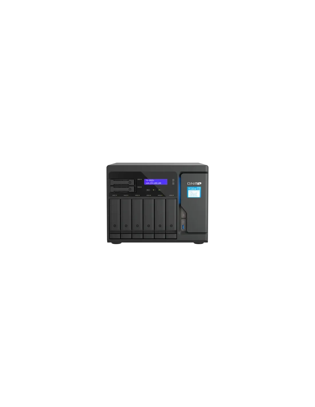 NAS 10GbE de 8 núcleos y alto rendimiento para implementar un almacenamiento de infraestructura híbrida y aplicaciones de virtualización de alta velocidadEl TS-855X de alta capacidad cuenta con seis bahías de unidades SATA de 3,5" (para HDD), dos bahías de unidades SATA de 2,5" (para SSD) y un procesador de 8 núcleos que admite la tecnología Intel® QuickAssist (QAT), por lo que ayuda considerablemente a las empresas a implementar un entorno de virtualización y almacenamiento de datos. La conectividad integrada de alta velocidad de 10GbE/2,5GbE contribuye al acceso rápido a los datos, la copia de seguridad y restauración, el servidor de archivos y las aplicaciones de virtualización. El TS-855X está equipado de serie con el sistema operativo QTS, pero puede cambiar de forma flexible al sistema operativo QuTS hero basado en ZFS en función de sus necesidades. El TS-855X se encontrará disponible y será compatible con QNAP durante un largo período de tiempo (hasta 2027), ideal para empresas que necesitan implementar modelos de NAS coincidentes en proyectos a largo plazo.Increíble rendimiento de 8 núcleos con hasta 128 GB de RAM y tecnología Intel® QuickAssistEl TS-855X ofrece un excepcional rendimiento de 8 núcleos para ejecutar múltiples tareas simultáneas. Admite el cifrado AES-NI y la tecnología Intel® QuickAssist (QAT) para eliminar la carga de la compresión que requiere recursos y mejorar el rendimiento de la criptografía IPsec/SSL. El TS-855X cuenta con cuatro ranuras UDIMM DDR4 (8 GB preinstalados) que se pueden actualizar a 128 GB de RAM ECC para cargas de trabajo más altas. Combinando alto rendimiento, fiabilidad y capacidad, el TS-855X es una solución completa y asequible para distintas aplicaciones, como servidores de archivos, almacenamiento/copia de seguridad/recuperación de alta velocidad y virtualización.Cree un entorno de red de 10 GbE/2,5 GbE de alta velocidadCon dos puertos LAN RJ45 2,5GbE (2,5G/1G/100M) nativos y un puerto 10GBASE-T (2,5G/1G/100M), el TS-855X responde a las necesidades de aplicaciones empresariales que requieren un gran ancho de banda o una alta fiabilidad, incluyendo la virtualización, la transferencia de archivos de gran tamaño, la copia de seguridad/restauración a alta velocidad y las aplicaciones en tiempo real. Combine los dos puertos de 2,5GbE con SMB 3.0 Multicanal para conexiones con tolerancia a fallos de hasta 5 Gbps. QNAP ofrece además numerosos switches de 2,5GbE/10GbE gestionables y no gestionables, de modo que las organizaciones pueden implementar entornos de red escalables, seguros y de alta velocidad sin que se salgan del presupuesto.Ranuras M.2 PCIe para caché SSD y reconocimiento de imágenes basado en IA aceleradoEl TS-855X incluye dos ranuras M.2 PCIe Gen 3 que permiten instalar SSD M.2 2280 NVMe (incluidas las marcas de SSD de Micron®, Seagate® y WD®) o Edge TPU (de venta por separado) para mejorar el rendimiento del NAS.Caché SSDConfigure la caché de SSD con SSD M.2 y obtenga una E/S óptima y una latencia reducida sin ocupar ninguna bahía de unidades de 3,5 pulgadas.Organización automática por nivelesLa tecnología de Qtier™ permite que el TS-855X utilice la organización automática por niveles para optimizar la eficiencia del almacenamiento en todos los dispositivos de almacenamiento instalados.Reconocimiento de imágenes más rápido con Edge TPUEl Acelerador Coral M.2 con Edge TPU ofrece una solución asequible para aprovechar la aceleración mediante IA para un reconocimiento de imágenes más rápido en las aplicaciones de su NAS. (De venta en el sitio web de Coral)Actualización a red 25GbE con capacidad de ampliación PCIeEl TS-855X incluye dos ranuras PCIe Gen 3 x4 que permiten la instalación de varias tarjetas de expansión para aumentar el potencial de las aplicaciones.Copia de seguridad sencillaRendimiento de hardware superior con una solución de copia de seguridad integral que acelera las tareas de copia de seguridad y recuperación.Copia de seguridad en PC y MacSincronice los archivos de su ordenador con el NAS gracias a Qsync. El TS-855X también admite Time Machine para equipos Mac.Copia de seguridad de VM sin licenciaHaga copia de seguridad de múltiples VM VMware® y Hyper-V™ utilizando Hyper Data Protector.Copia de seguridad de archivos:Admite múltiples protocolos como Rsync, FTP y CIFS para hacer copia de seguridad de diferentes servidores de archivos.Solución de copia de seguridad SaaSUtilice Boxafe para hacer fácilmente copia de seguridad de los datos de la cuenta empresarial de Microsoft 365® y Google™ Workspace.Copia de seguridad de WordPress y Google FotosEl exclusivo servicio MARS permite hacer copia de seguridad de los archivos y las bases de datos de Google Fotos y WordPress en el NAS.Las instantáneas de varias versiones mitigan las amenazas de ransomwareEl TS-855X admite instantáneas basadas en bloques que registran el estado del sistema en cualquier momento. Esto ayuda a proteger los datos, que se pueden restaurar en cualquier punto temporal, lo que ayuda considerablemente a mitigar la amenaza del ransomware.Instantáneas LUN y de volumenTome instantáneas en segundos y revierta todo el volumen/LUN a un punto temporal concreto para evitar la pérdida de datos importantes.Restaure instantáneas al instanteEl contenido de la instantánea puede restaurarse rápidamente en un NAS local o se puede restaurar en una carpeta/archivo en un NAS local/remoto o almacenamiento en la nube. También puede ver y restaurar cómodamente las instantáneas desde el lado del cliente.Copia de seguridad de las instantáneas¡Multiplique la protección de los datos haciendo una copia de seguridad de los archivos de instantánea! Replique las instantáneas LUN y de volumen del TS-855X en un NAS remoto (Snapshot Replica) copiando solo los cambios realizados. Esto puede ahorrar tiempo y ancho de banda y se puede realizar manualmente o de manera programada.Almacenamiento fiab
