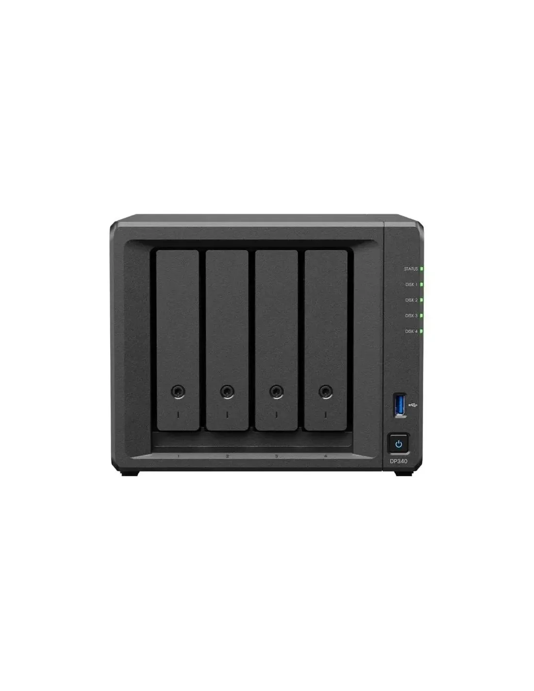 Marca Synology Modelo DP340 Características - Formato: sobremesa - CPU: AMD R1600 (2 nucleos) - Memoria: 16 GB - Configuracion de almacenamiento: 4 x 8 TB HDD (RAID 5) 2 x 400 GB SSD (RAID 1) - Interfaz de red: 1 x RJ-45 1 GbE (gestion) 1 x RJ-45 10 GbE (transferencia de datos) - Voltaje de entrada AC: 100 V a 240 V - Frecuencia: 50/60 Hz monofasico - Consumo electrico: 35,51 W (acceso) - BTU: 121,09 BTU/h (acceso) - Entorno de funcionamiento: 0 C a 45 C; 8% a 80% HR - Entorno de almacenamiento: -20 C a 60 C; 5% a 95% HR - Certificaciones: FCC, CE, UKCA, BSMI, RCM, NCC, VCCI, KC, BIS, EAC - Cumplimiento ambiental: RoHS Dimensiones y peso - 166 x 199 x 223 mm - 5,2 kg Contenido - 1 x unidad principal DP340 - 4 x HDD SATA 3,5" - 1 x adaptador - 1 x cable de alimentacion AC - 2 x cable LAN RJ-45 - 1 x pack de accesorios - 1 x guia rapida de instalacion Fecha de revisión 26-12-2025 por IS