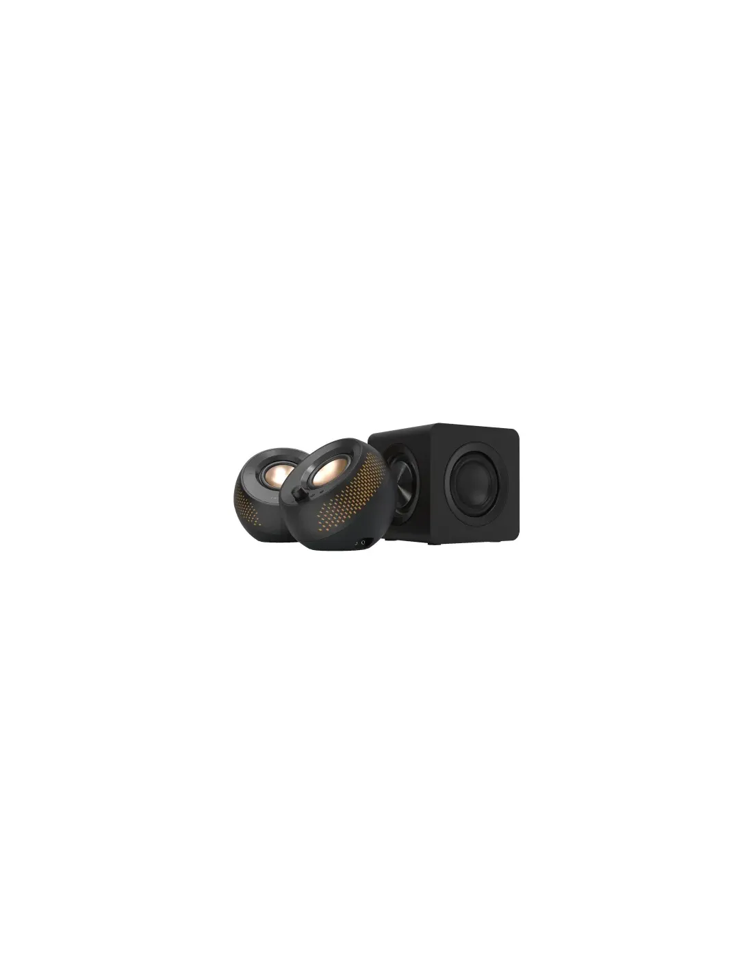 Creative Labs Creative Pebble X Plus. Canales de salida de audio: 2.1 canales, Potencia estimada RMS: 30 W, Uso recomendado: Universal. Relación señal/ruido (SNR): 93 dB. Tipo de subwoofer: Altavoz de subgraves (subwoofer) pasivo, Potencia RMS de subwoofer: 30 W, Diámetro del conductor del subwoofer (imperial): 8,89 cm (3.5"). Fuente de energía: USB. Ancho: 139,5 mm, Profundidad: 132 mm, Altura: 136 mm