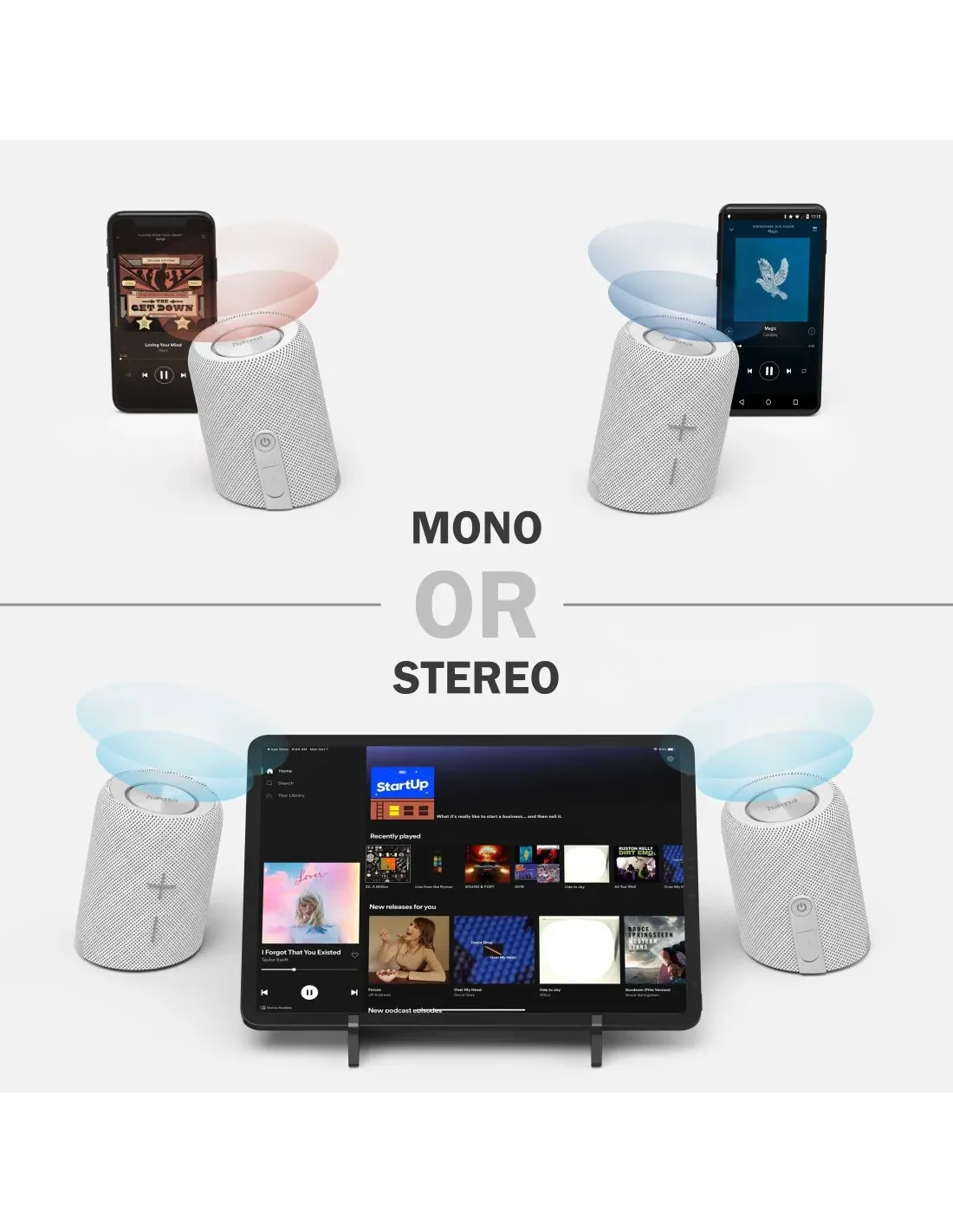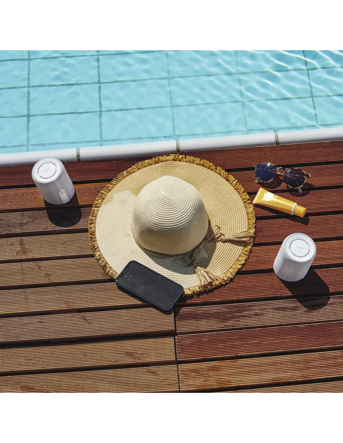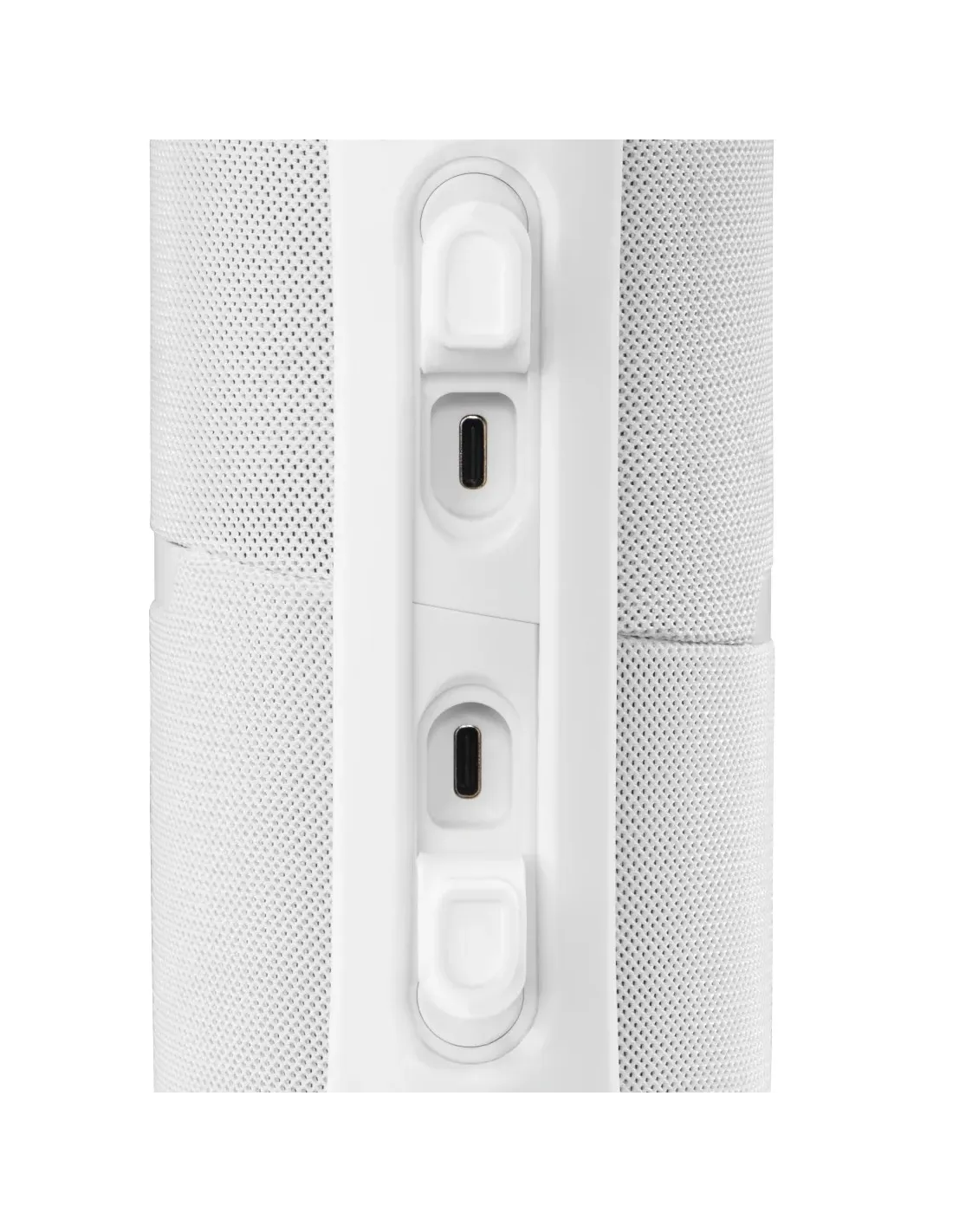 Portátil y estéreo: con el altavoz "Twin 3.0", podrás relajarte con la mejor calidad de sonido donde tu quieras. El altavoz resistente al agua se puede dividir: de 1 a 2 = ¡para un sonido estéreo excepcional!Aspectos TécnicosDiseño (Color,patron,Motivos, Series) Color BlancoTono del Color BlancoConectividad (Conexión) Conexión Conector USB-CConexión BluetoothMáx. Rango 10 mPropiedades Electroespecificas Capacidad 4000 mAhVersión de Bluetooth 5.0Voltaje 3.7 VPropiedades fisicas Distorsión máxima 1 %Funciones Adicionales Altavoz, InalámbricoPotencia máxima de música 30 WProtección IP67 (protection against dust ingress and temporary immersion)Sistema de Audio EstéreoMedida&,Peso Altura 21 cmAncho 8,4 cmPeso 865 gProfundidad 8,4 cmEnergia Duración Máxima de la Batería 10 hEnergía 5.55 WhFuente de Alimentación Batería Li-Ion integradaTiempo de Carga en Horas 3 hTipo de Batería Batería de iones de litioCampo de Aplicación Uso Recomendado Mobile MusicMás detalles del productoConecta 2 altavoces en estéreo con el True Wireless: disfruta de la música en cualquier lugar y en cualquier momento vinculándolo a tu móvil, tablet o portátil.Conecta los 2 altavoces a través de Bluetooth True Wireless Stereo (TWS) y disfruta aún más de películas, series y juegosUsa los altavoces en cualquier lugar de la casa: desde la cocina y el dormitorio hasta el baño, la azotea o el garaje, sin cables colgantes.Altavoz interior y exterior: gracias a la clase de protección IP67, los altavoces impermeables son a prueba de polvo y sumergibles (máx. 30 min y 1 m de profundidad )Funcionamiento fácil y cómodo: elementos de control de alta calidad para controlar rápidamente la pista siguiente/anterior, Reproducir y PausaGran sonido en un formato compacto: el conjunto de altavoces Bluetooth cabe en un maletín y es fácil de transportar, ideal también para utilizarlo como altavoces de exterior en el jardín para un picnic, etc.Micrófono integrado para máxima flexibilidad, p. como altavoz de escritorio para PC y largas reuniones en línea y videollamadasUso universal gracias a Bluetooth 5.0: simplemente conecte el altavoz a un dispositivo compatible, desde computadoras portátiles y televisores hasta teléfonos inteligentesCarga a través de USB-C: el cable para carga rápida está incluidoAsa colgante ultraflexible como funda para almacenamiento e ideal como asa de altavoz