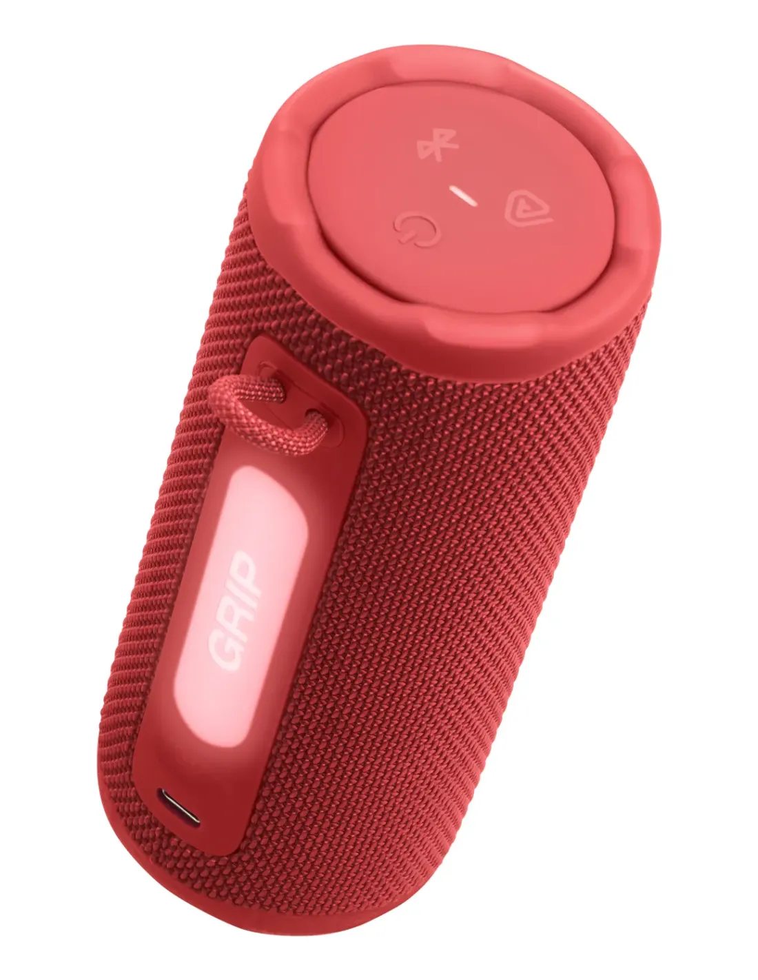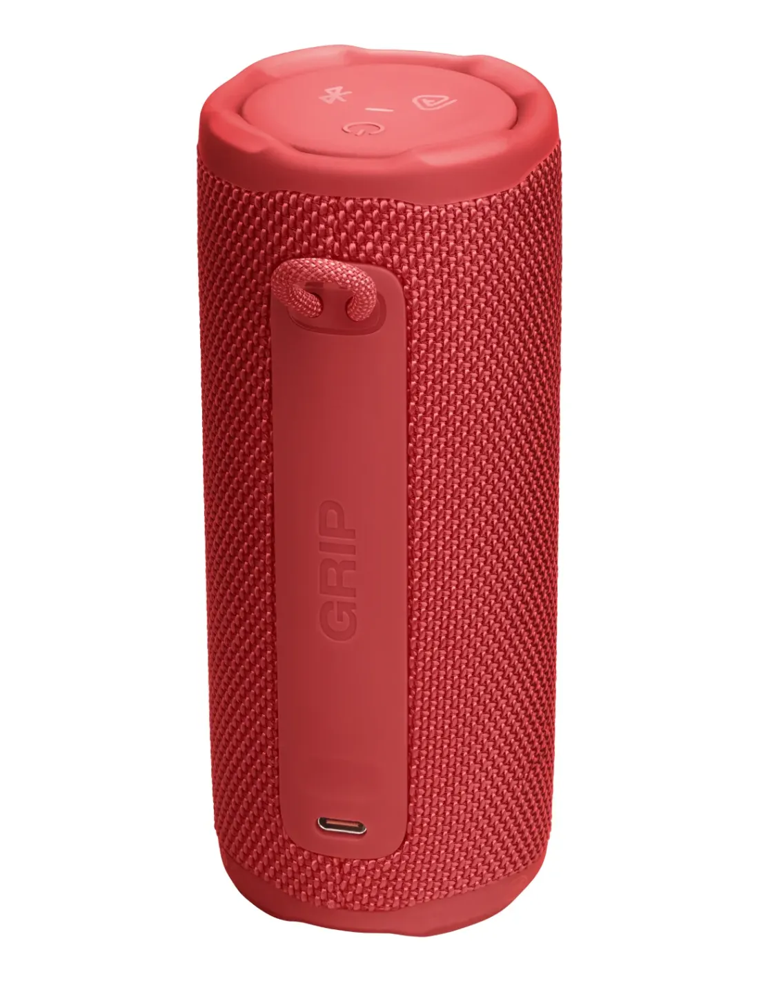 JBL Grip. Potencia estimada RMS: 16 W, Rango de frecuencia: 70 - 20000 Hz, Relación señal/ruido (SNR): 80 dB. Tecnología de conectividad: Inalámbrico, Alcance de frecuencia: 2,4 - 2,483 GHz, Perfiles de Bluetooth: A2DP, AVRCP. Tipo de producto: Altavoz monofónico portátil, Color del producto: Rojo, Control de volumen: Botones. Uso recomendado: Teléfono móvil/Smartphone. Tipo de batería: Batería integrada, Potencia de carga requerida (mín.): 7,5 W, Potencia de carga requerida (máx.): 15 W