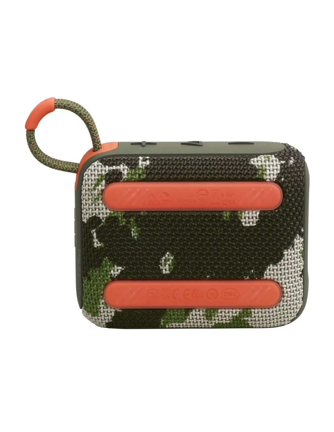 JBL Go 4. Potencia estimada RMS: 4,2 W, Rango de frecuencia: 90 - 20000 Hz, Relación señal/ruido (SNR): 85 dB. Tecnología de conectividad: Inalámbrico, Alcance de frecuencia: 2,4 - 2,4835 GHz, Perfiles de Bluetooth: A2DP, AVRCP. Tipo de producto: Altavoz monofónico portátil, Color del producto: Camuflaje, Control de volumen: Botones. Uso recomendado: Teléfono móvil/Smartphone. Tipo de batería: Batería integrada, Potencia de carga requerida (mín.): 2,5 W, Potencia de carga requerida (máx.): 5 W