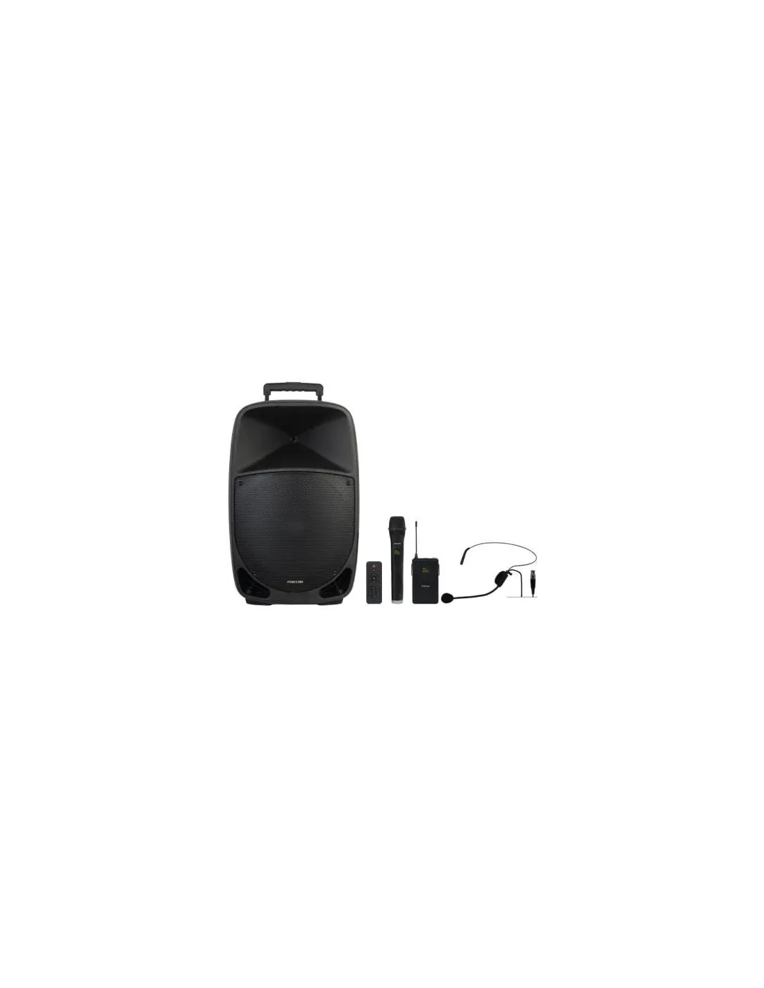 Altavoz portátil con reproductor Bluetooth/USB/microSD/FM/LINE y 2 micrófonos inalámbricos UHF (1 de mano y 1 de cabeza).Este altavoz te acompañará en todas tus fiestas, actuaciones o charlas en directo ya que en un tamaño reducido proporciona multitud de opciones de reproducción, amplificador de 250 W máximo,micrófonos (de cable e inalámbrico) y batería de litio.Su gran potencia de sonido te permitirá cubrir eventos más de 50 personas con una excelente calidad de audio por su gran definición en frecuencias agudas y refuerzo en graves BASS REFLEX.El MALIBU-315 incorpora todo lo necesario para amplificar el sonido. Incluye dos micrófonos inalámbricos, uno de mano y otro de cabeza, y dos entradas de micrófono para conectar otros mediante cable.Podrás hacer karaoke activando la función Voice Canceller que cancela la voz de la música, asignar prioridad de voz para atenuar la música mientras se habla por los micrófonos y controlar de maneraindependiente el volumen, BASS y TREBBLE del reproductor y de los micrófonos. Además, incorpora una entrada de guitarra y una salida de línea del reproductor para poder conectar otro altavoz.Dispone de un reproductor de Bluetooth, USB/microSD, radio o línea con mando a distancia. El reproductor permite configurar el sonido a su gusto gracias a ecualizaciones preestablecidas y a 2controles manuales para BASS y TREBBLE. Además, permite grabar la señal de micrófono y, mediante su función TWS, ofrece la posibilidad de reproducir simultáneamente por 2 altavoces en estéreoutilizando la conexión bluetooth.Muy versátil, adaptable a multitud de usos y fácilmente transportable gracias a su diseño de carro trolley y a sus componentes ligeros altamente eficientes, como el amplificador clase D y la bateríarecargable de Litio, que requiere poco mantenimiento y proporciona una gran autonomía.Es un altavoz de uso sencillo e intuitivo que minimiza el tiempo de configuración y lo hace adecuado para todo tipo de usuarios, incluso sin grandes conocimientos de audio. Ideal para sonorizar fiestasfamiliares y pequeños eventos, o para usuarios más profesionales, para clases, cursos, presentaciones o artistas que quieren hacer pequeñas actuaciones en directo o recitales de música con guitarra.ESPECIFICACIONESAltavoz portátil.2 micrófonos inalámbricos UHF, 1 de mano y 1 de cabeza (650 MHz y 660 MHz).Reproductor Bluetooth/USB/microSD/FM/LINE y grabador del audio del micrófono.Receptor Bluetooth 5.0.Función karaoke con Voice Canceller, prioridad, controles para micrófono (eco, bass y treble) y control de volumen independiente de la música y los micrófonos.Función TWS para emparejar por Bluetooth dos altavoces.Entrada de guitarra.Entrada para micrófono con cable.Batería recargable de Li-ion.Refuerzo en graves BASS REFLEX.Mando a distancia para reproductor.Carro de transporte trolley.Orificio en la base para tubo de 35 mm.POTENCIA:250 W máximo50 W RMSALTAVOCES:1 woofer 15"1 tweeter 1"ENTRADAS:2 micrófonos, jack 6'3 mm, 4.700 59'6 mV1 línea estéreo, jack 3'5 mm, 10,000 392 mV1 guitarra, jack 6'3 mm, 101 mVSALIDAS:1 auxiliar, RCACONTROLES:Volumen de micrófonos con eco y control de graves y agudos.Volumen de reproductor con control de graves y agudos.Reproductor con selección de fuente, control de reproducción, grabación, TWS, eliminador de voz, prioridad de voz, modo de reproducción y ecualización.Indicador de carga de batería.ALIMENTACIÓN:110-240 V CA, 84'5 WBatería Li-ion 7'4 V, 5000 mAhAutonomía con batería recargable: 16 h*Tiempo de carga de la batería: 3 h*Autonomía al 50% del volumen. Dependiendo del tipo de música y del volumen, la autonomía puede verse reducida.Funciona durante la recargaMicrófonos inalámbricos: 2 pilas LR6-AAMando a distancia: 2 pilas LR03-AAAMEDIDAS:440 x 680 x 370 mm fondoPESO:11'20 kgOPCIONAL:FAL-M15: bolsa de transporte