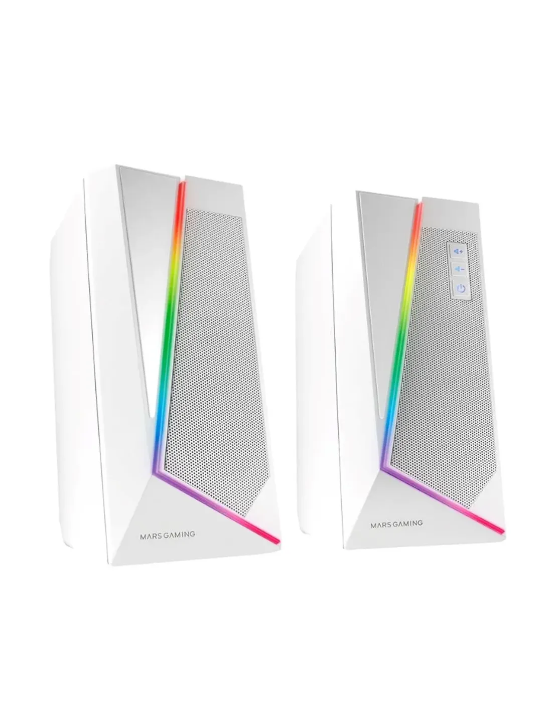 MARS GAMING Altavoces 20W Usb,Jack y Bt blancosMarca Mars GamingModelo MS7WCaracterísticas - Tamaño: Compacto- Iluminación: RGB Control- Acabado: Mate- Tipo de cable: Recubrimiento de goma- Potencia: 20W- Conector: USB alimentación + Jack 3.5mm audio- Drivers: 2 Activos- Rango de frecuencia: 20Hz-20KHz- Impedancia: 4- Control de volumen- Voltaje: DC 5V- Corriente: 1A- Longitud del cable: 150cm (Jack/USB) 90cm (altavoz/altavoz)- Compatibilidad: PC/Mac/Smartphone/Tablet- Versión Bluetooth: 5.0- Distancia de conexión: 10mDimensiones y peso- 180 x 90 x 80 mm- 720 g
