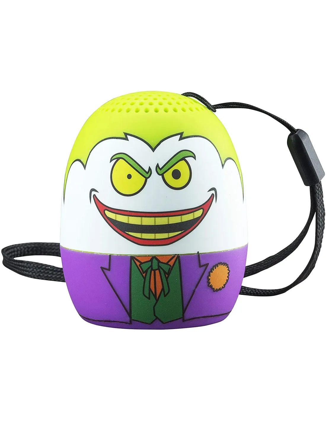 EKIDS es la marca de altavoces de merchandising con los mejoresdiseños. En este caso, este altavoz con forma de huevo trae el rostro deJoker, junto con sus características ropas y colores del carismáticovillano de DC.Posee una bateria con una autonomía de 6 horas, y además de tenerbluetooth, tiene la función de manos libres para contestar el telefono.Lleva 1 pila Litio Ion necesaria (incluida). Su tamaño, con una altura de 7centímetros, lo hace muy manejero y facil de llevar.