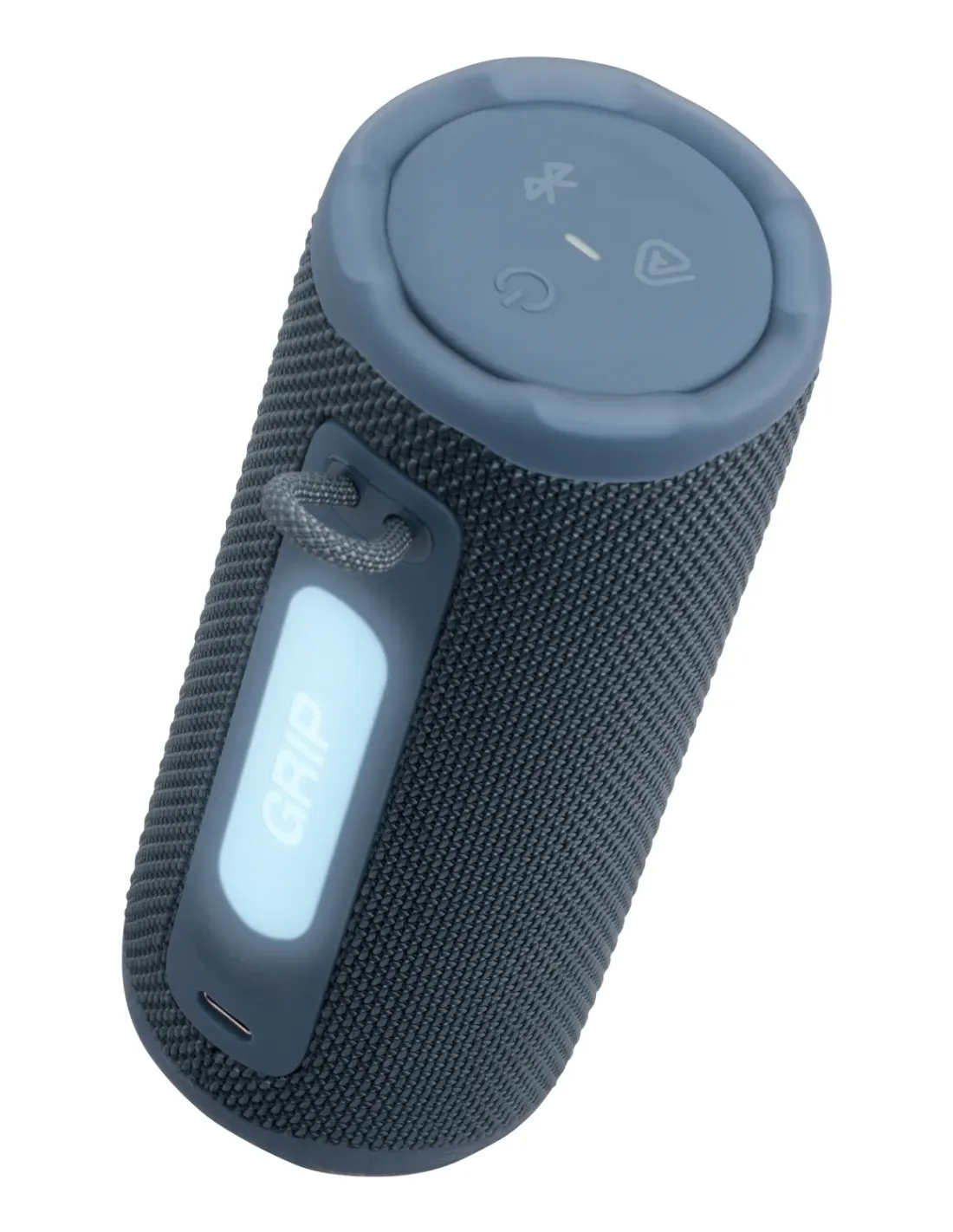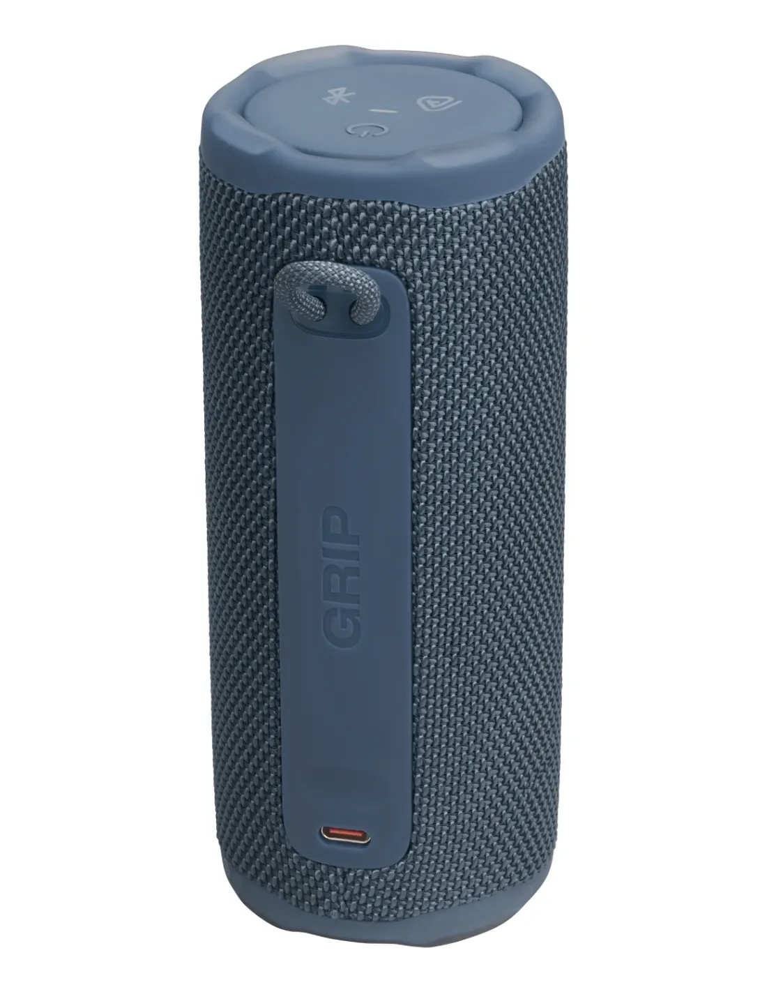 JBL Grip. Potencia estimada RMS: 16 W, Rango de frecuencia: 70 - 20000 Hz, Relación señal/ruido (SNR): 80 dB. Tecnología de conectividad: Inalámbrico, Alcance de frecuencia: 2,4 - 2,483 GHz, Perfiles de Bluetooth: A2DP, AVRCP. Tipo de producto: Altavoz monofónico portátil, Color del producto: Azul, Control de volumen: Botones. Uso recomendado: Teléfono móvil/Smartphone. Tipo de batería: Batería integrada, Potencia de carga requerida (mín.): 7,5 W, Potencia de carga requerida (máx.): 15 W