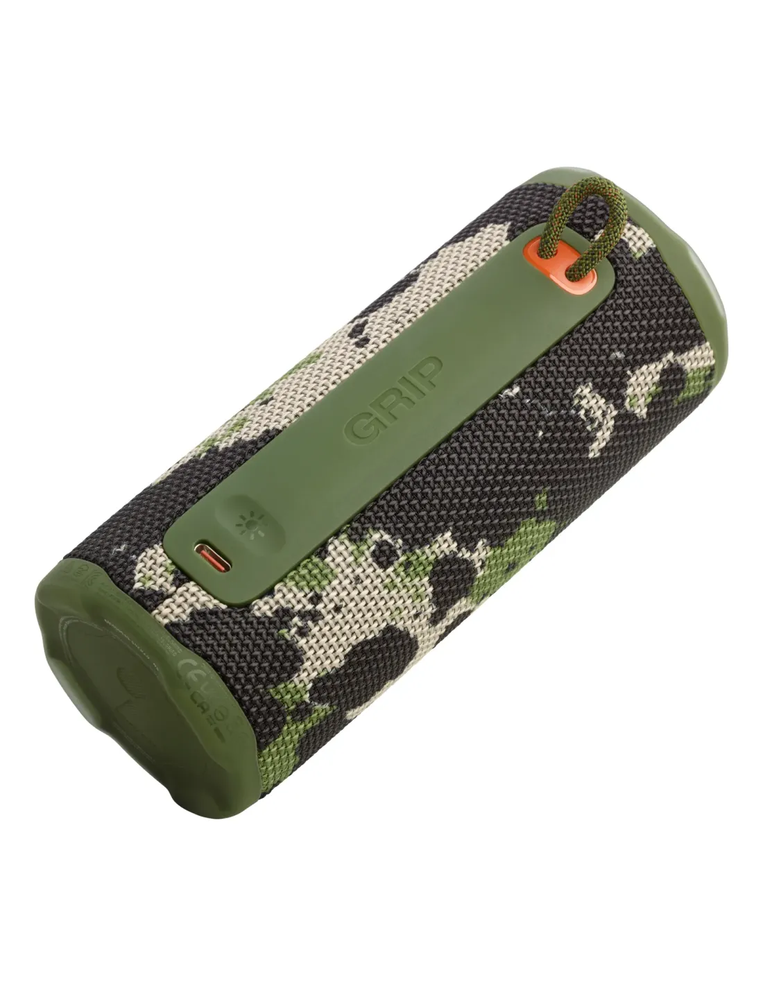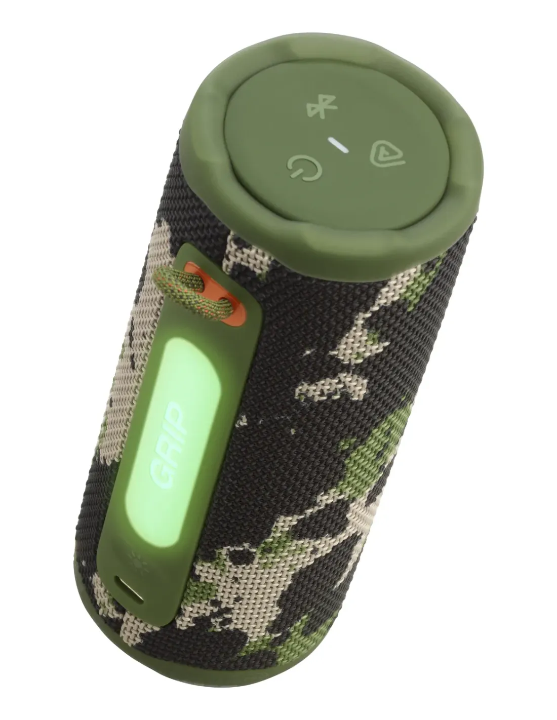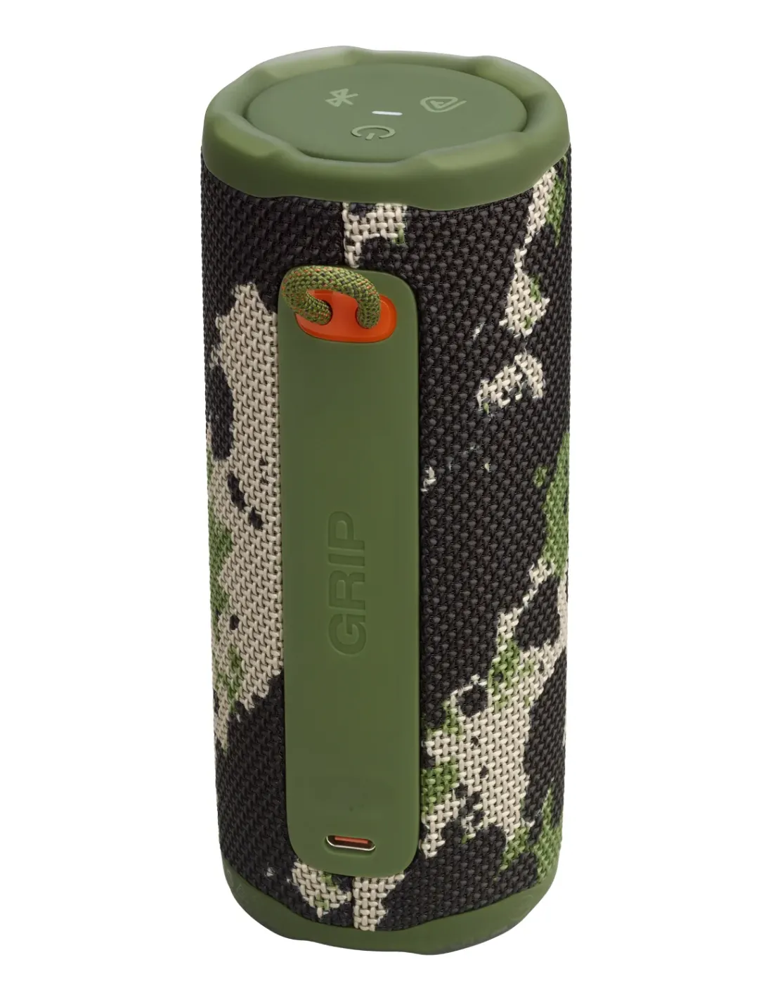 JBL Grip. Potencia estimada RMS: 16 W, Rango de frecuencia: 70 - 20000 Hz, Relación señal/ruido (SNR): 80 dB. Tecnología de conectividad: Inalámbrico, Alcance de frecuencia: 2,4 - 2,483 GHz, Perfiles de Bluetooth: A2DP, AVRCP. Tipo de producto: Altavoz monofónico portátil, Color del producto: Camuflaje, Control de volumen: Botones. Uso recomendado: Teléfono móvil/Smartphone. Tipo de batería: Batería integrada, Potencia de carga requerida (mín.): 7,5 W, Potencia de carga requerida (máx.): 15 W