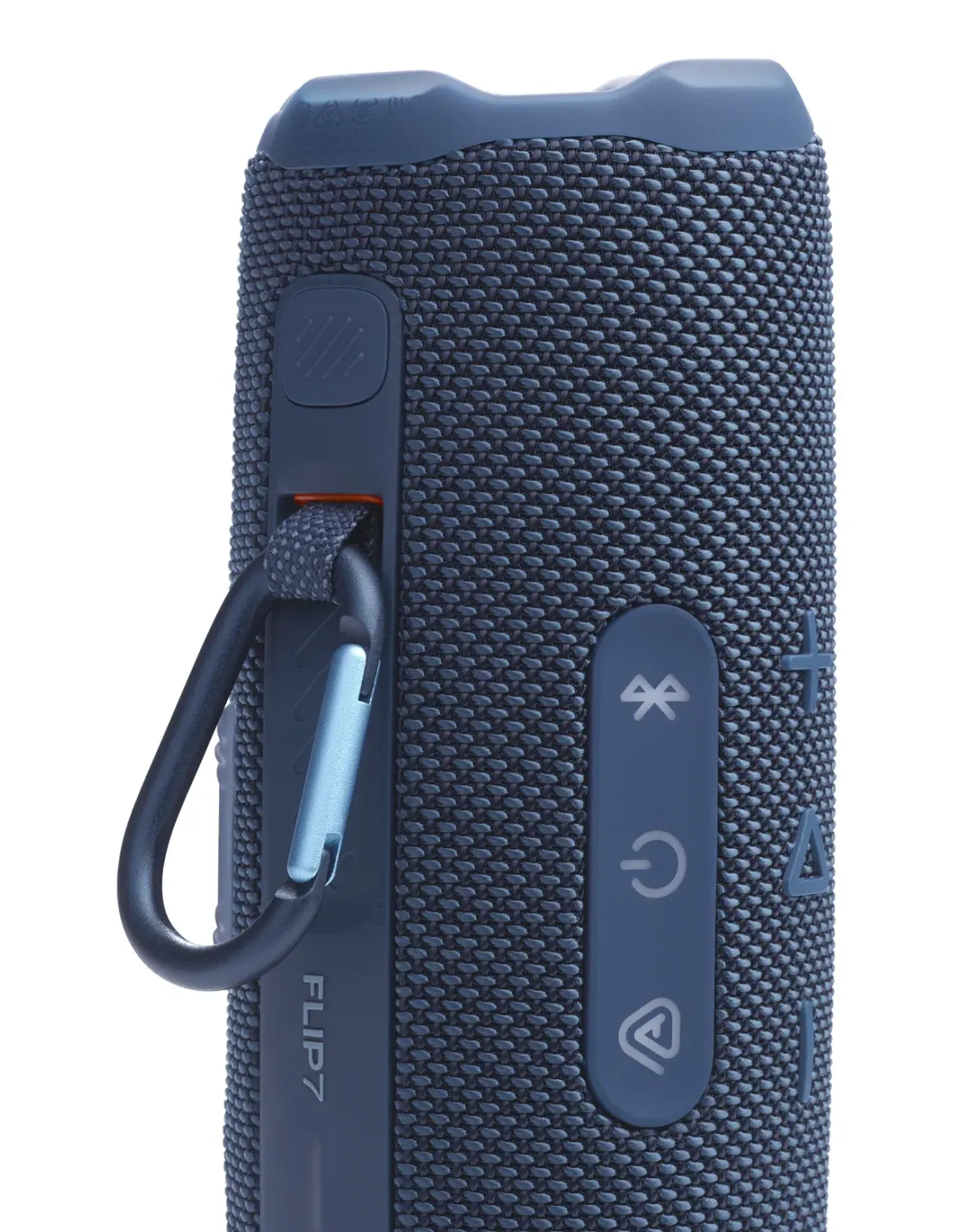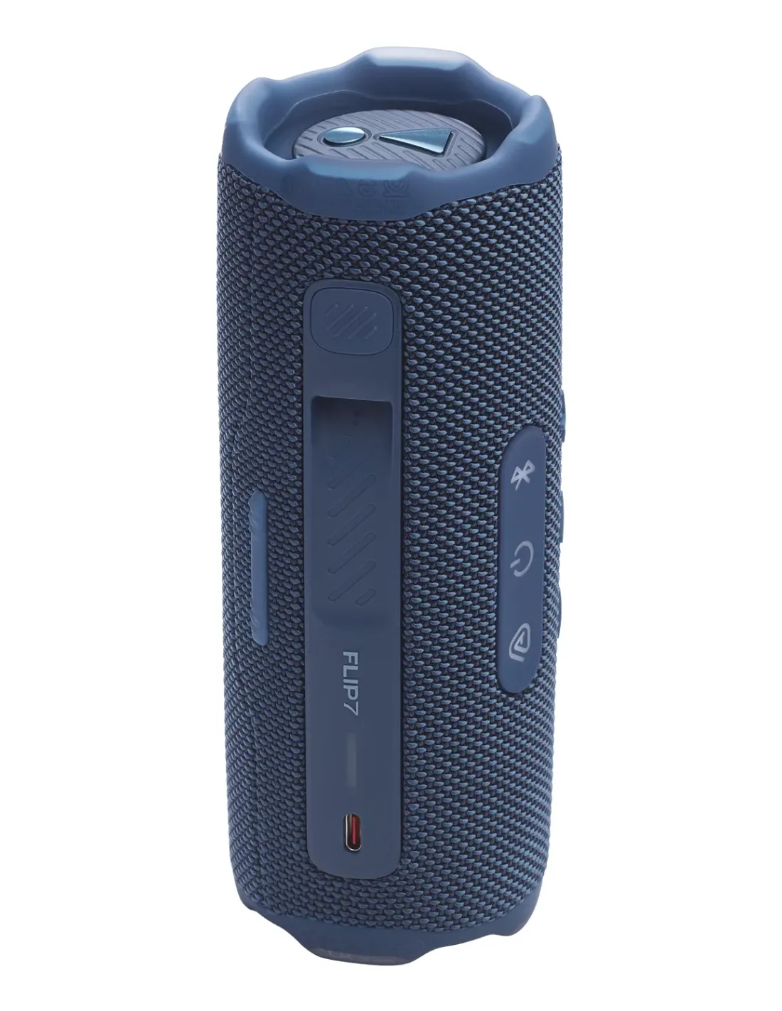 JBL Flip 7. Tipo de altavoces: De 2 vías, Diámetro del tweeter (imperial): 1,52 cm (0.6"), Diámetro del tweeter: 1,6 cm. Potencia RMS del altavoz de graves (woofer): 25 W, Potencia RMS del altavoz de agudos (tweeter): 10 W, Rango de frecuencia: 60 - 20000 Hz. Tecnología de conectividad: Inalámbrico, Perfiles de Bluetooth: A2DP, AVRCP, Conector USB: USB Tipo C. Color del producto: Azul, Diseño de producto: Cilindro, Control de volumen: Botones. Uso recomendado: Universal