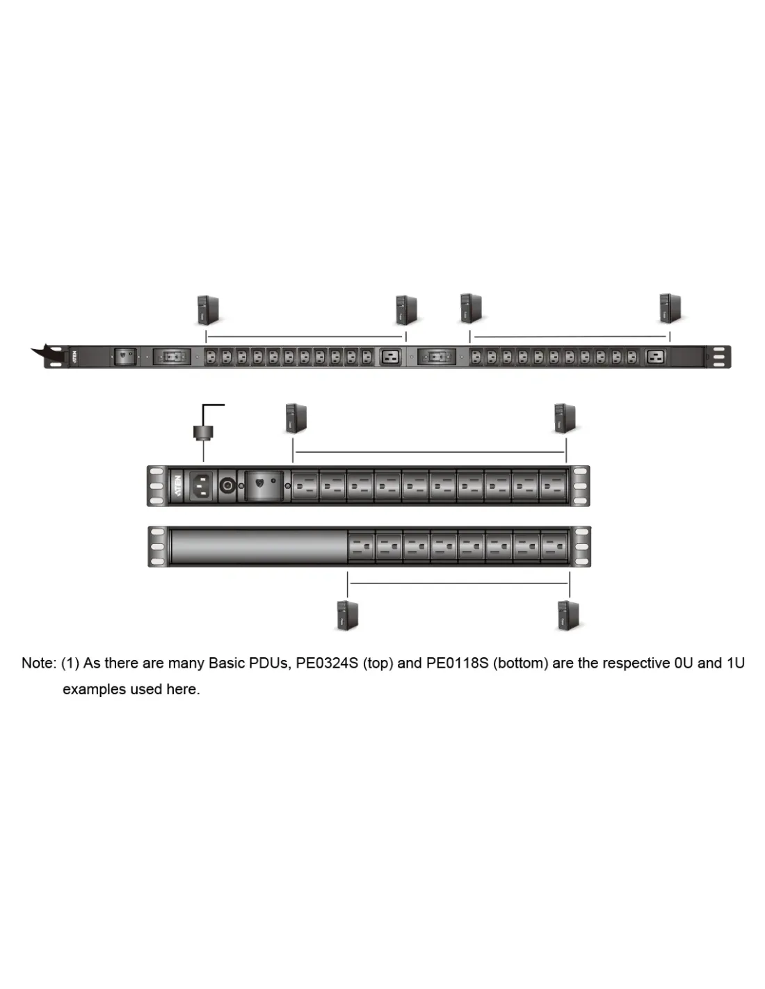 ATEN PDU básica de 0U con protección de tensión, Básico, 0U, Aluminio, Negro, 24 salidas AC, C13 acoplador, C19 acoplador