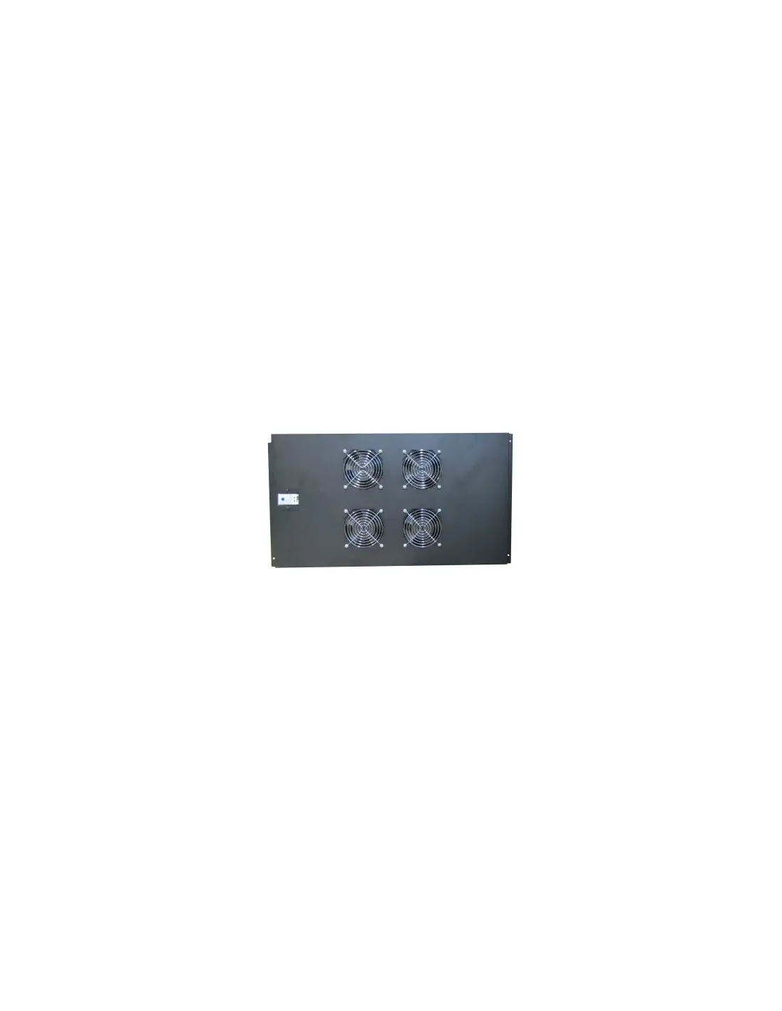Unidad de ventilación con cuatro ventiladores que puede instalarse en la parte superior de armarios WP RACK serie RNA de 1.000mm de profundidad. La unidad de ventilación está equipada con un termostato para mantener controlada la temperatura interior del armario y evitar un consumo de electricidad excesivo.