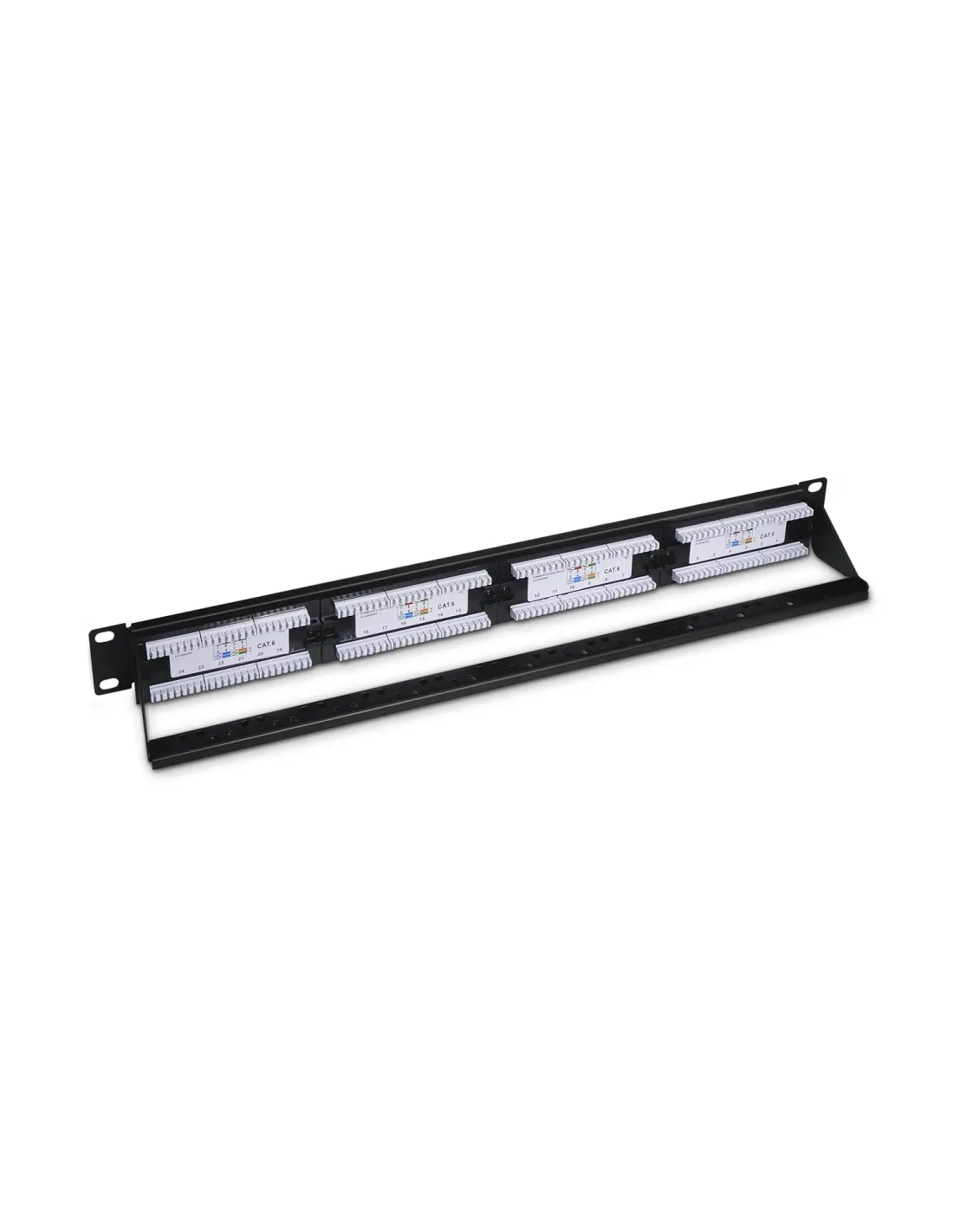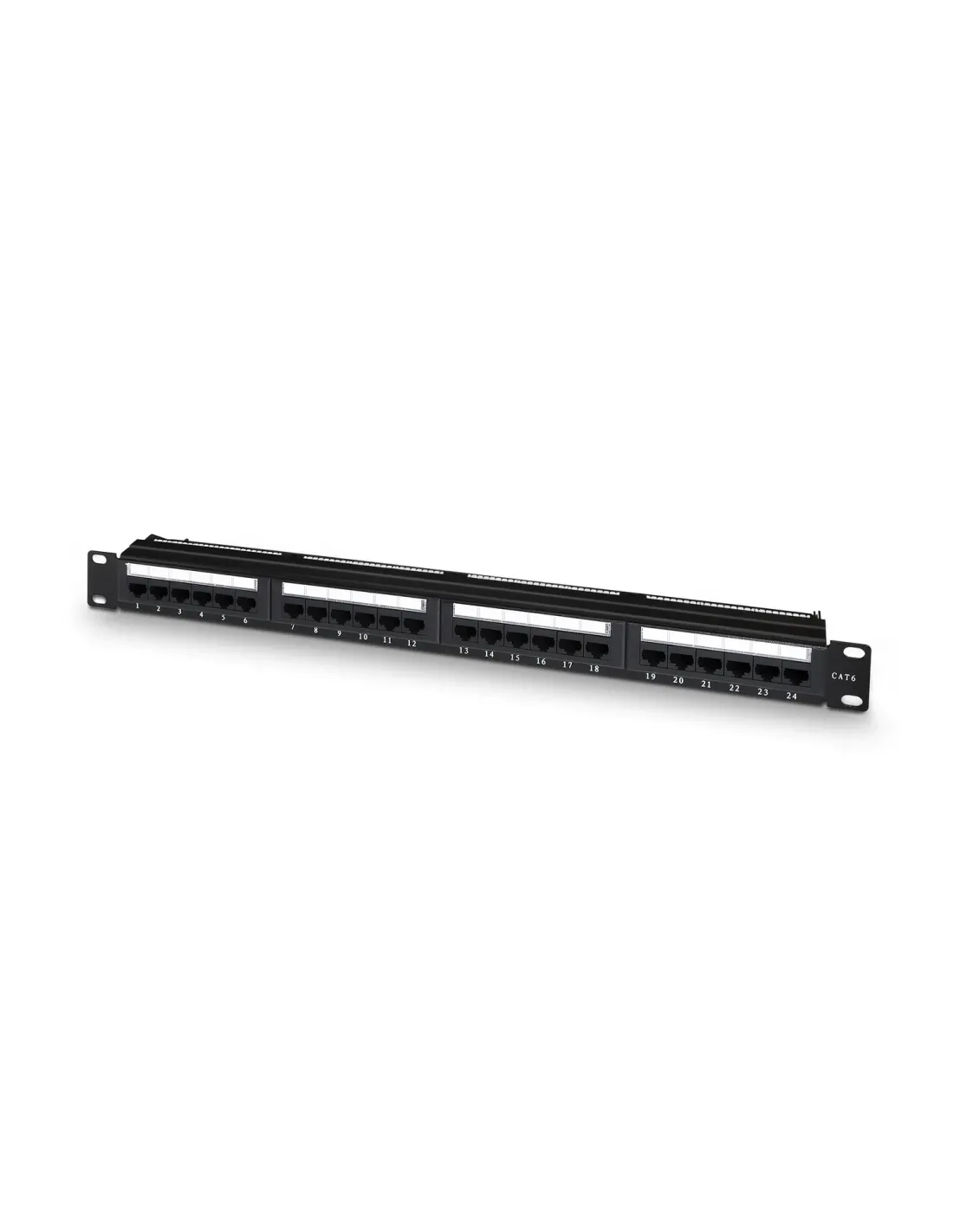 Panel de parcheo de 24 puertos con gestión de cables para conexión RJ45 cat.6 utp.Sistema de inserción: dual IDCAncho: 19 pulgadas, alto: 1U (44,45 mm)Código de colores T568A y T568B.Acepta cables de calibres 26, 24, 23 y 22 AWG.Ciclos de vida de inserción mayores a 750.Sistema de gestión de cables incorporado para facilitar la instalación