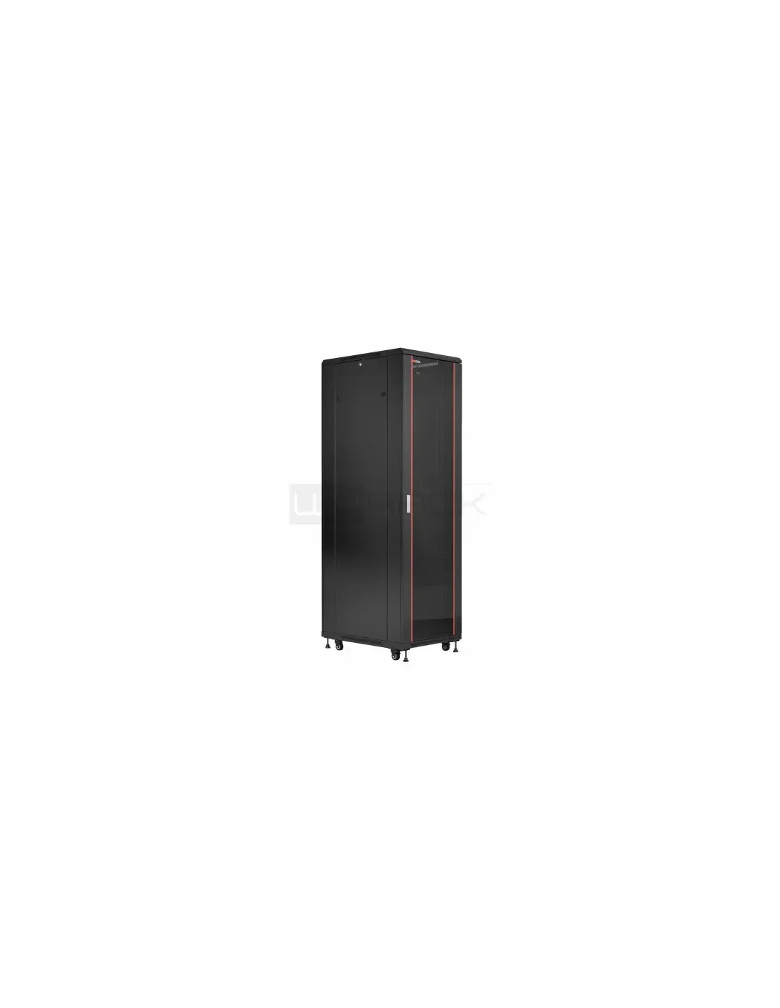 La serie RNA de armarios bastidores para la instalación en el suelo le permite crear cualquier configuración que desee gracias a su gran variedad de tamaños disponibles.\nLa puerta de cristal templado, el armazón de acero de 2 mm, los cierres (también en los paneles laterales desmontables), las 4 ruedas y las 4 patas de nivelación convierten esta serie en una solución sencilla y con todo lo necesario para su instalación.\nAdemás, tiene la posibilidad de adquirirlo montado o desmontado, lo que facilita el desplazamiento y reduce el riesgo de daños durante el transporte a su lugar de destino.\n- Se vende totalmente desmontado en una caja de cartón reforzado\n- Estructura principal de acero sólido de 2 mm y laterales de acero de 1,5 mm\n- Su puerta de cristal templado se abre en un ángulo de 180°, dispone de un armazón metálico de 1,5 mm e incluye un asa y un cierre con llave\n- Paneles laterales desmontables, además de cierres y llaves, para una fácil instalación del equipo\n- Entrada de cable tanto en la parte superior como en la inferior (con tapa)\n- Carcasa para ventiladores de 120 mm o kits de ventilación especiales en la parte superior.\n- Soporta una capacidad de hasta 800kg\n- Completo con 4 puntales delanteros numerados con profundidad ajustable\n- Completo con patas de nivelación y 4 ruedas (2 con freno)\n- Kit para el montaje en el suelo incluido\n- Dimensiones An x Pr x Al: 600x800x1166mm\n- 20 sets de tornillos incluidos (tornillos + tuercas enjauladas)\n- Color: Negro, RAL 9005\n- Unidad: 22\n- Clase de protección IP 20