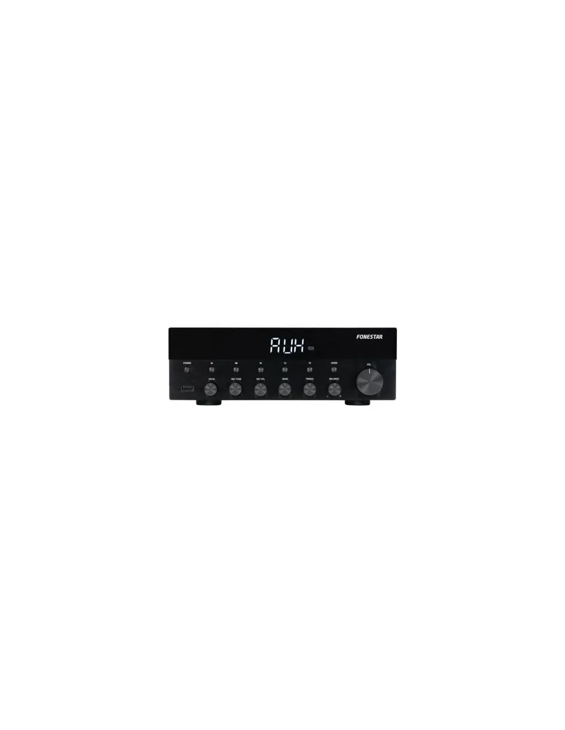 Amplificador estéreo Hi-Fi.Receptor Bluetooth.Reproductor USB/MP3.Radio FM.Entradas de micrófono con eco y tono.Panel de aluminio.Mando a distancia para reproductor.POTENCIA15 + 15 W RMS a 4RESPUESTA20-20.000 HzRELACIÓN SEÑAL/RUIDO>,70 dBDISTORSIÓNArmónica: <, 0'5% a 1 kHzENTRADAS1 auxiliar, 2 x RCA, 17.000 220 mV RMS2 micros balanceados, jack 6'3 mm, 900 9 mV RMSSALIDASAltavoces:Main L/R, 4-16 terminales roscados o bananasPROTECCIONESTemperatura, cortocircuito y sobrecargaALIMENTACIÓN230 V CA, 90 WMEDIDAS250 x 90 x 276 mm fondoPESO2'65 kgACCESORIOSCable de antena FMPilas para el mando a distancia