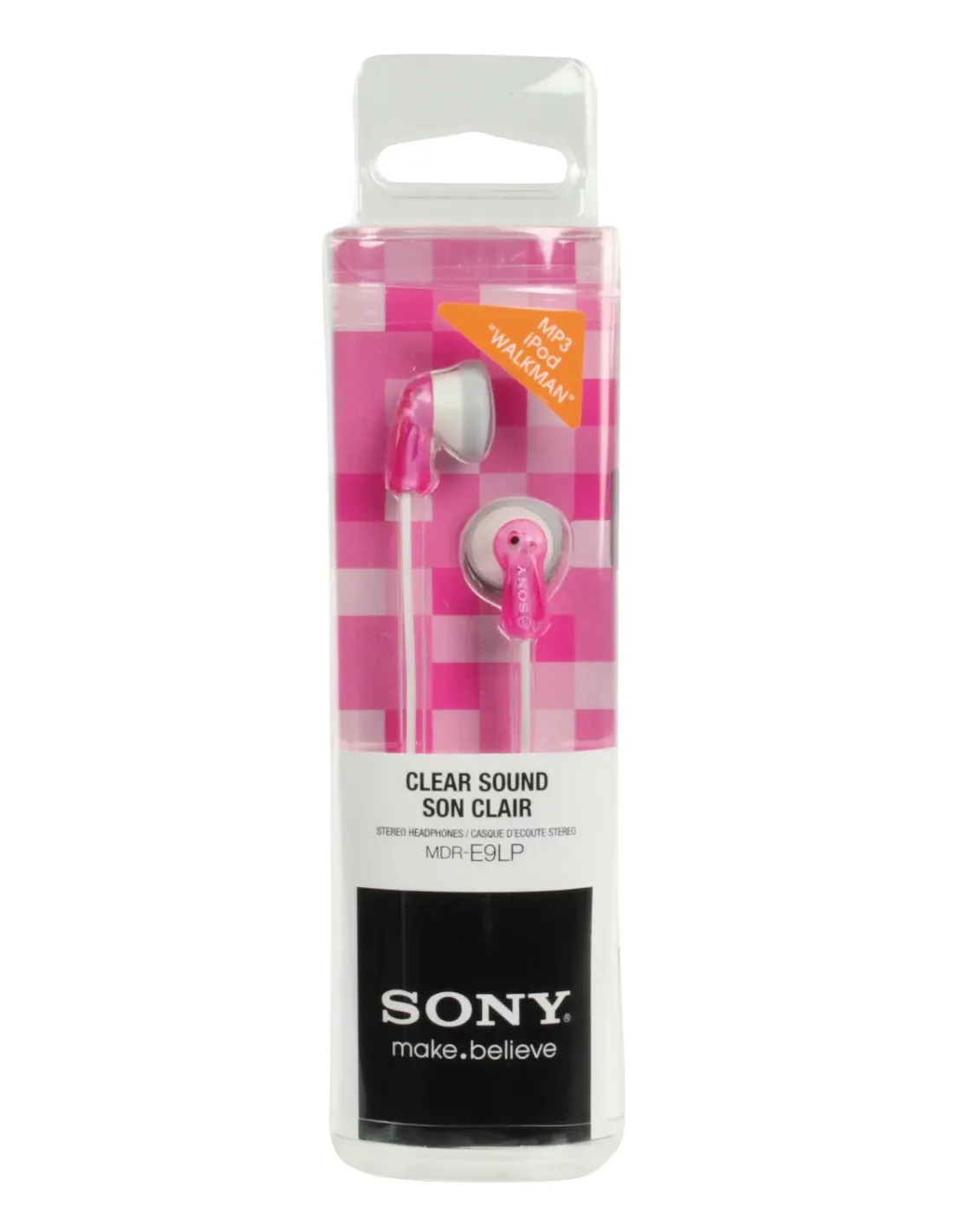 Sony MDR-E9LP. Tipo de producto: Auriculares. Tecnología de conectividad: Alámbrico. Uso recomendado: Música. Frecuencia de auricular: 18 - 22000 Hz. Longitud de cable: 1,2 m. Peso: 6 g. Color del producto: Rosa, Blanco