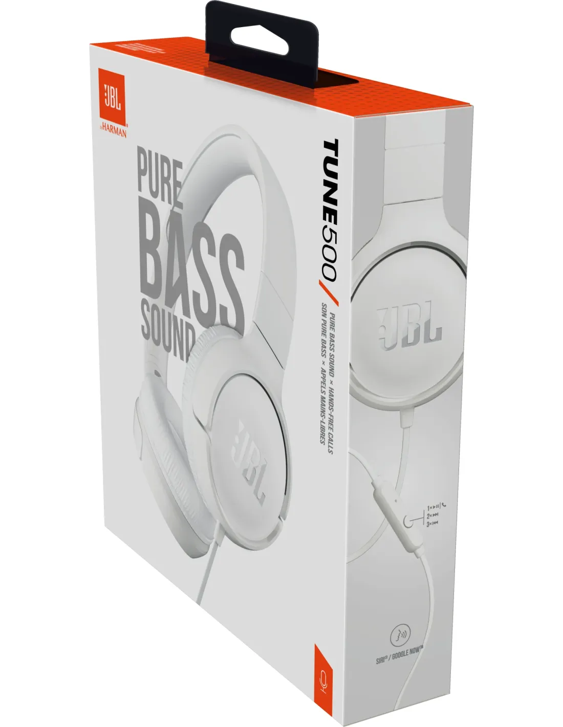 JBL Tune 500. Tipo de producto: Auriculares. Tecnología de conectividad: Alámbrico. Uso recomendado: Música. Frecuencia de auricular: 20 - 20000 Hz. Peso: 148 g. Color del producto: Blanco