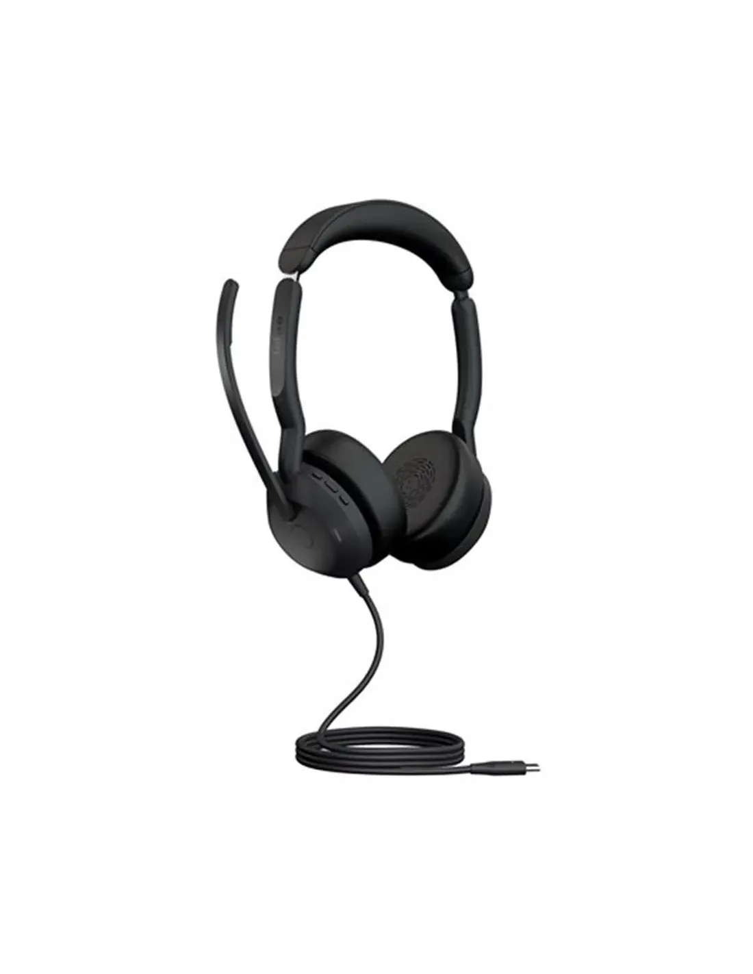 ```- GENERALColor: NegroTipo de producto: Auricular con cable USB-C, USB-AUso recomendado: Componentes electrónicos portátiles, teléfono, ordenador - comunicaciónMaterial de las almohadillas: Cuero sintético, espumaPeso: 148.9 gDistancia operativa máxima: 30 mGarantía del fabricante: 2 añosCaracterísticas generales:- Indicador LED- Protección auditiva- DIMENSIONESAltura: 6.5 cmAnchura: 19.3 cmProfundidad: 17.5 cm- ACCESORIOS INCLUIDOSBolso para transporte- CABLEDetalles de cables: Cable USB - 1.7 m- CUMPLIMIENTO Y CERTIFICACIONESCumplimiento de normas: Plug and Play, G616Certificación de software: Certificado de UC (comunicación unificada)- PARÁMETROS DE ENTORNOTemperatura mínima de funcionamiento: -10 °CTemperatura máxima de funcionamiento: 55 °CTemperatura mínima de almacenamiento: -10 °CTemperatura máxima de almacenamiento: 55 °C- AUDIO SALIDACant. de dispositivos conectables simultáneamente: 1Modo de salida del sonido: EstéreoRespuesta de frecuencia: 20 - 20000 HzEliminación activa de ruido: SíDiafragma: 28 mmAlimentación de entrada máxima: 30 mWTecnología de conectividad: CableadoFactor de forma de los auriculares: En orejaVersión Bluetooth: Bluetooth 5.2Perfiles Bluetooth:- Perfil de manos libres (HFP)- Perfil de auricular (HSP)- Perfil de puerto de serie (SPP)- Perfil de distribución de audio avanzado (A2DP)- Perfil de control remoto de audio y vídeo (AVRCP)- Phonebook Access Profile (PBAP)Características de audio:- Tecnología SafeTone- Tecnología PeakStop- Jabra Direct- Jabra Xpress- CONEXIONESTipo de conector: Auriculares (USB Type-C)- MICRÓFONOMicrófonos incluidos: 4Respuesta de frecuencia: 20 - 10000 HzSensibilidad: -38 dBV/PascalTipo: BoomFactor de forma: Micrófono de auriculares- CONTROL REMOTOControles:- Sin sonido- Volumen- Encendido/apagado- Busylight- Llamada```