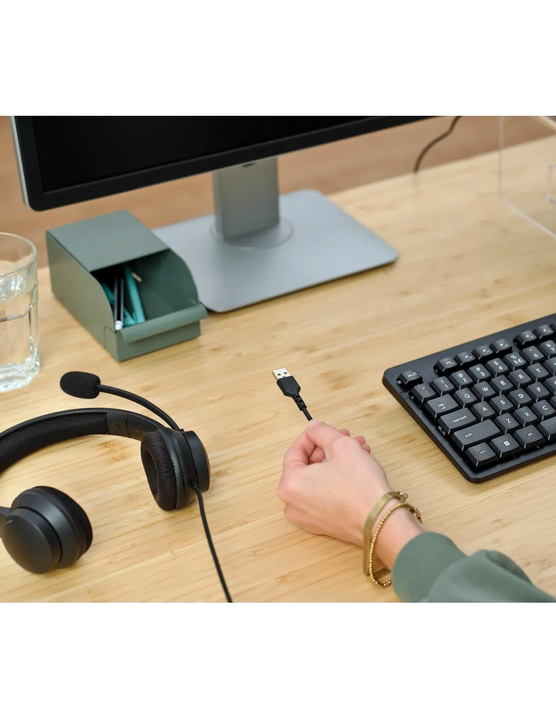 ¿Una reunión sorpresa? ¡No se preocupe! Solo tiene que conectar este juego de auriculares a través de la cómoda conexión USB y USB-C, compatible con cualquier ordenador portátil o PC, y estará listo para intervenir en cuestión de segundos.