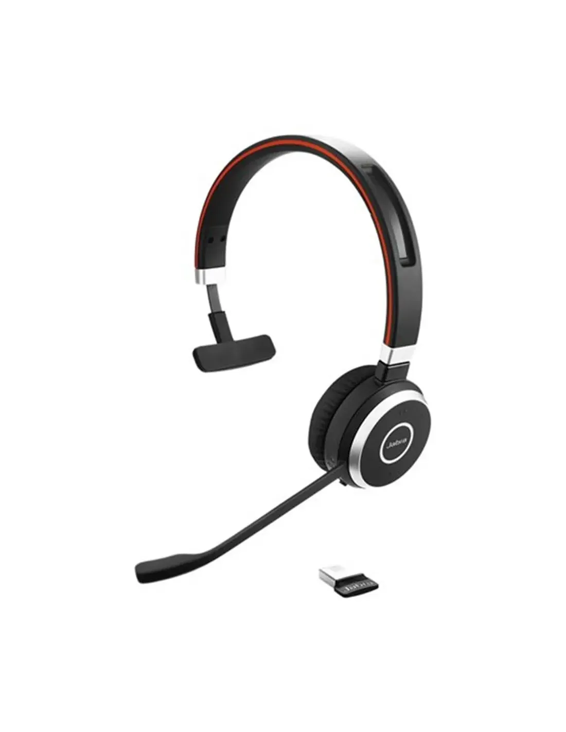 ```- GENERALTipo de producto: Auricular inalámbrico Bluetooth con USBUso recomendado: Componentes electrónicos portátiles, ordenador - comunicaciónCompatibilidad: Mac, WindowsMaterial del cuerpo: AluminioMaterial de la banda de cabeza: Espuma, siliconaMaterial de las almohadillas: Cuero sintéticoAnchura: 15 cmAltura: 15.7 cmProfundidad: 6.05 cmPeso: 79 gDistancia operativa máxima: 30 m- ACCESORIOS INCLUIDOSBolsillo de neoprenoAdaptador USB 380a Jabra LinkCable USB (extraíble)- CUMPLIMIENTO Y CERTIFICACIONESCumplimiento de normas: Plug and Play, FCC-ID, KCC, RCM, NCC, TELEC, SRRC, IC, G616Diseñado para: Jabra Evolve, Jabra LINK 380a MS- ALIMENTACIÓNTipo de batería: Pila recargable para auriculares - Ion de litioCapacidad: 500 mAhTiempo de recarga: 2 horasTiempo de ejecución máximo:- Conversación continua (cancelación de ruido desactivada): hasta 12 horas- Reproducción continua (cancelación de ruido activada): hasta 11 horasTiempo en modo de espera: 15 días- AUDIO SALIDAModo de salida del sonido: MonoTecnología de conectividad: InalámbricoTecnología inalámbrica: BluetoothVersión Bluetooth: 4.0Cantidad de dispositivos conectables simultáneamente: 2Perfiles Bluetooth:- A2DP- HFP- AGHFP- HSPCódec de audio Bluetooth: SBCDiafragma: 28 mmAlimentación de entrada máxima: 10 mWRespuesta de frecuencia: 150 - 7000 HzSensibilidad: 93.6 dBEfectos de sonido: HD VoiceFactor de forma de los auriculares: En orejaCaracterísticas de audio:- Luz ocupado- Jabra Direct- Jabra Xpress- Tecnología SafeTone- Procesamiento digital de señales- Tecnología PeakStop- Guía de voz- MICRÓFONOTipo: BoomFactor de forma: Micrófono de auricularesCancelación de ruido: SíModo de operación del micrófono: UnidireccionalRespuesta de frecuencia: 100 - 10000 HzSensibilidad: -17 dBFS/PaDetalles de la entrada de audio: Unidireccional - 100 - 10000 Hz- CONTROL REMOTOControles:- Sin sonido- Volumen- Activado/desactivado- Responder/finalizar- Indicador de estado- Rechazar llamada- DIMENSIONES Y PESO (EMBALAJE)Anchura del embalaje: 18.1 cmAltura del embalaje: 5.3 cmProfundidad del embalaje: 21 cm```