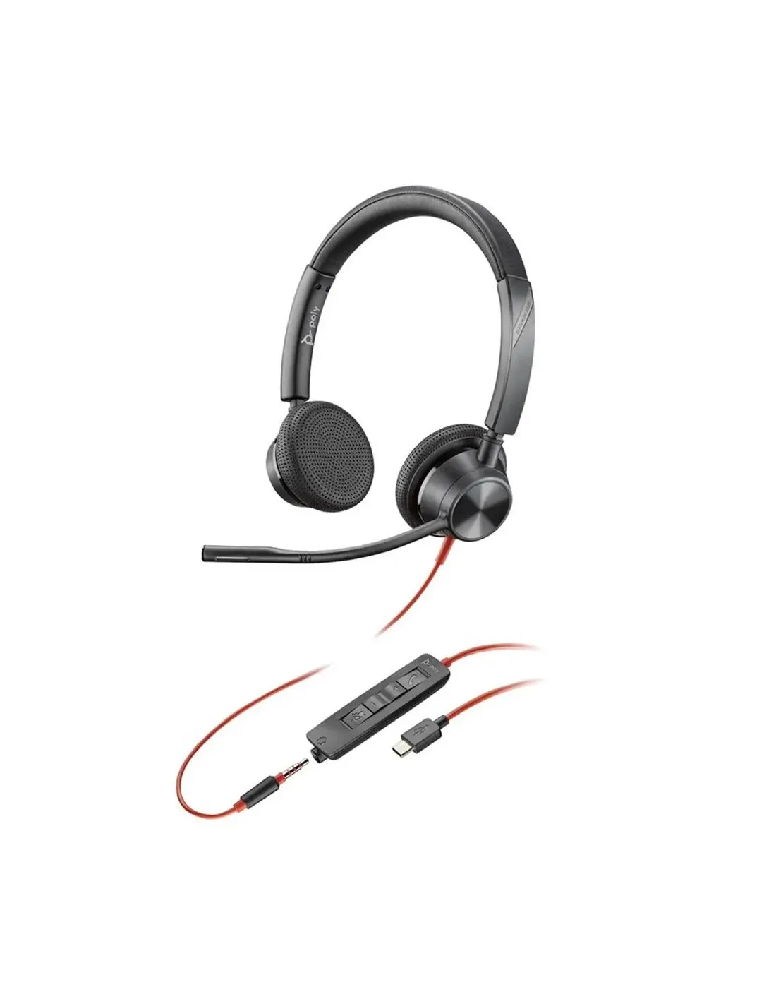 HP Poly Auriculares estéreo Poly Blackwire 3325 USB-C + Conector de 3,5 mm + Adaptador USB-C/A, Alámbrico, Oficina/Centro de llamadas, 20 - 20000 Hz, 131 g, Auriculares, Negro