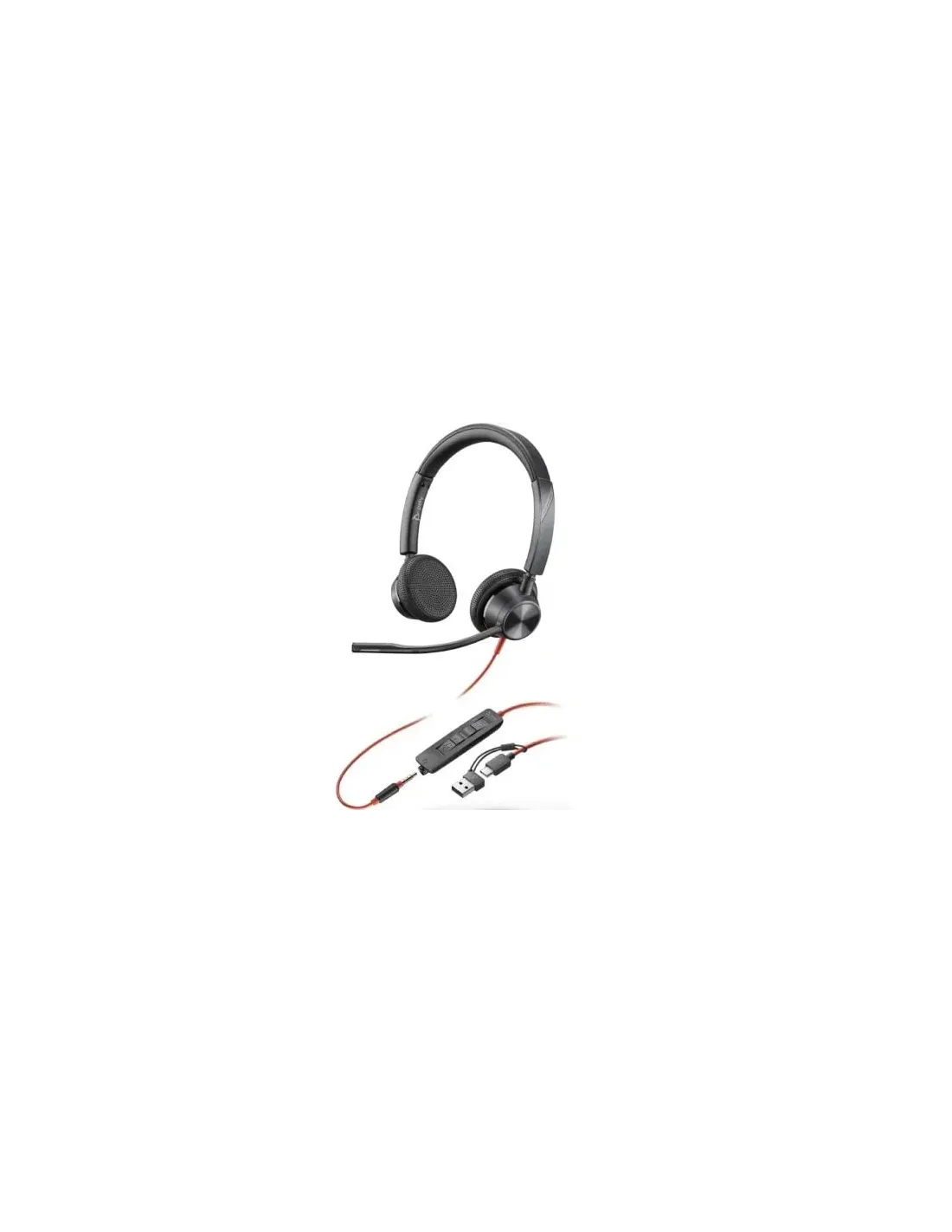 Poly Blackwire 3325 - Blackwire 3300 series - auricular - en oreja - cableado - conector de 3,5 mm, USB-C - negro - Certificado para Equipos de Microsoft, Certificado de UC (comunicación unificada) -Descripción del productoPoly Blackwire 3325 - auricularTipo de productoAuricular - cableado - conector de 3,5 mm, USB-CCompatibilidadMac, WindowsUso recomendadoOrdenador, componentes electrónicos portátilesColorNegroFactor de forma de los auricularesEn orejaTecnología de conectividadCableadoModo de salida del sonidoEstéreoEspecificaciones de audioSensibilidad 116 dBImpedancia32 OhmRelación señal/ruido118 dBTipo de micrófonoBoomModo de operación del micrófonoOmnidireccionalCancelación de ruido del micrófonoSíControlesResponder/finalizar, sin sonido, volumenCertificación de softwareCertificado para Equipos de Microsoft, Certificado de UC (comunicación unificada)
