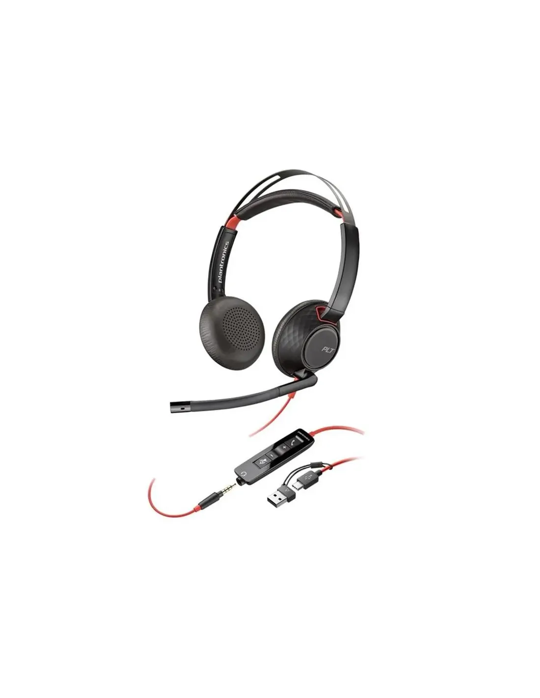 HP Poly Auriculares estéreo Poly Blackwire 5220 USB-C + Conector de 3,5 mm + Adaptador USB-C/A, Alámbrico, Business/Everyday, 165,2 g, Auriculares, Negro