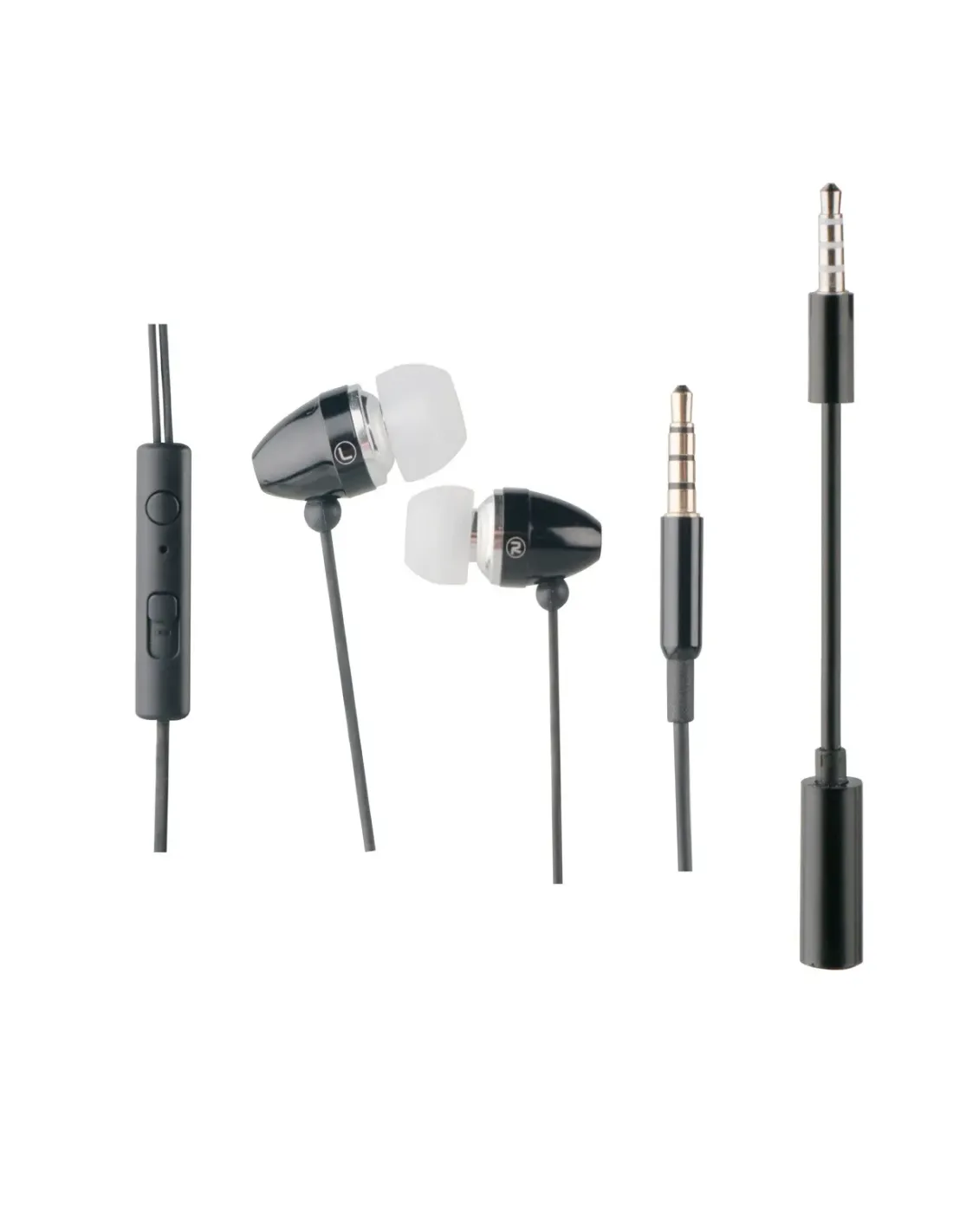Auriculares estéreo de muvit, con micrófono y adaptador Jack 3,5 mm, de color negro.¿Te gusta escuchar música pero no quieres perder ninguna llamada en tu smartphone?Con los auriculares estéreo con micrófono + adaptador 3,5mm de muvit podrás recibir/realizar llamadas gracias a su micrófono integrado. La música se detendrá cuando recibas una llamada yreanudará cuando la termines.CaracterísticasProducto universal con conector Jack 3.5 mm.Con micrófono y control integrado.Incluye 3 pares de almohadillas de distintos tamaños para un mayor ajuste y comodidad.Incluye un adaptador Jack 3.5 mm a 3.5 mm para su compatibilidad con todos las marcas y modelos de teléfono.