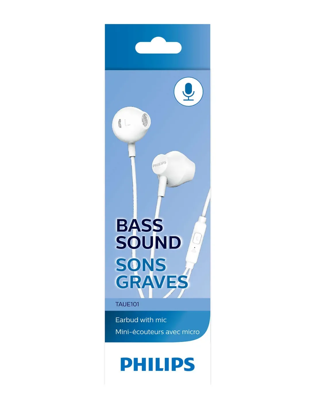 Philips TAUE101WT. Tipo de producto: Auriculares. Tecnología de conectividad: Alámbrico. Uso recomendado: Llamadas/Música. Frecuencia de auricular: 20 - 20000 Hz. Longitud de cable: 1,2 m. Peso: 65,4 g. Color del producto: Blanco