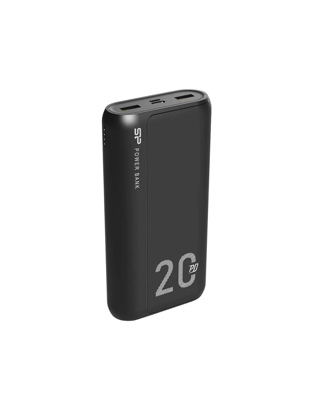 Powerbank de alta capacidad con 20.000mAh, diseñado en color negro y equipado con tecnología de carga rápida QC. Ofrece energía suficiente para múltiples recargas de smartphones y otros dispositivos portátiles.