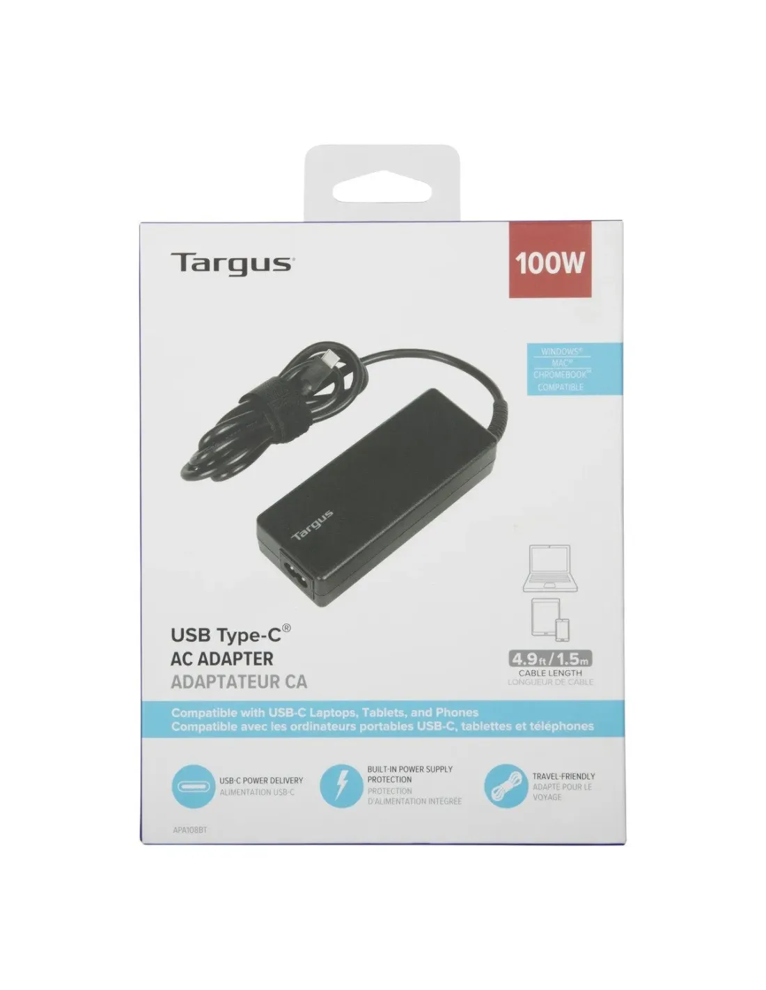 Targus APA108EU, Interior, 100 W, CA a CC, Targus, Negro, 1,5 m