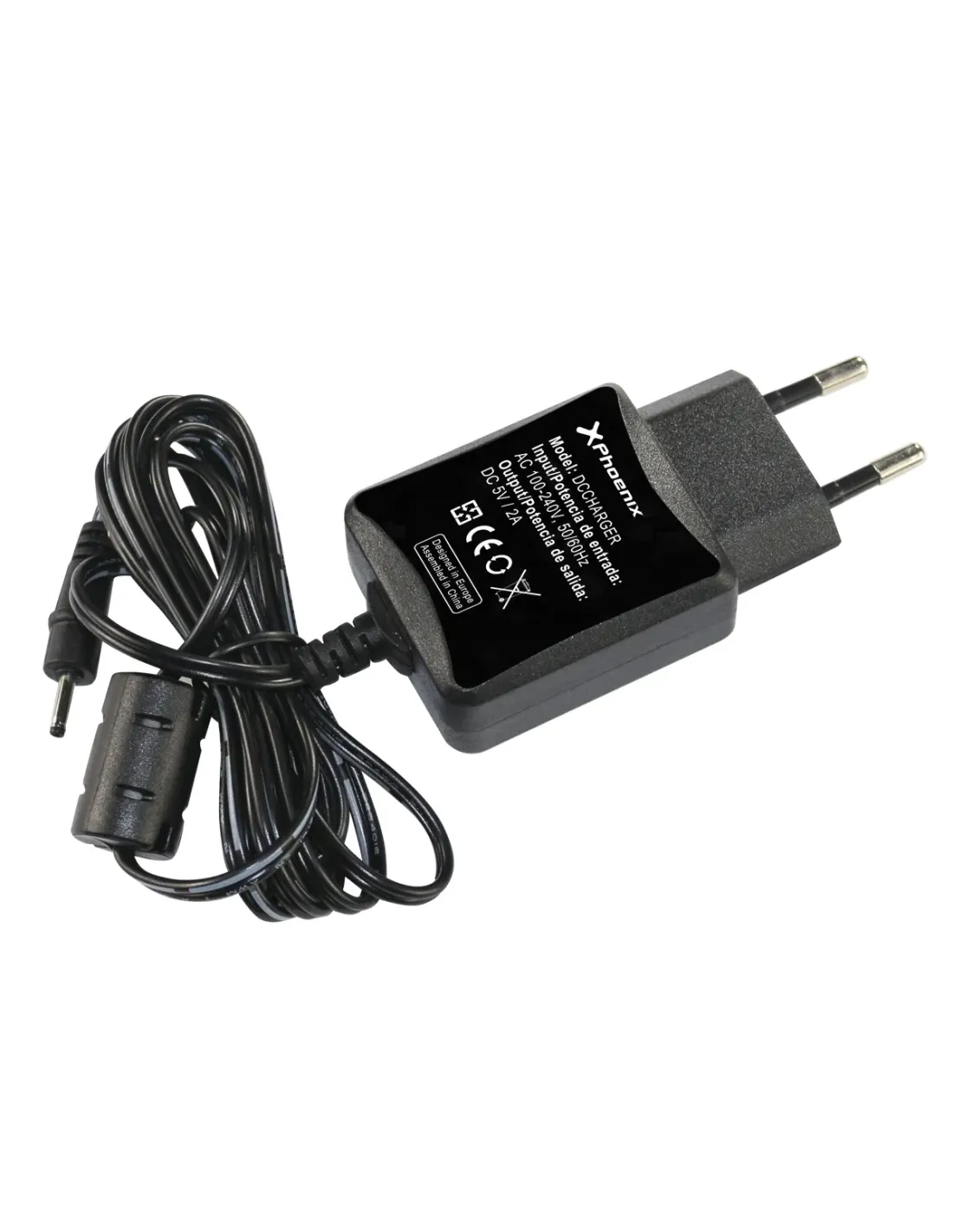 Usa tu cargador de pared Phoenix ?DCCharger+? universal ya ests en casa, en la oficina o de viaje. Este compacto cargador de pared est diseado especialmente para enchufes europeos aunque es compatible con otros dispositivos que admitan una potencia de 5 V DC para que puedas usarlo all donde vayas.