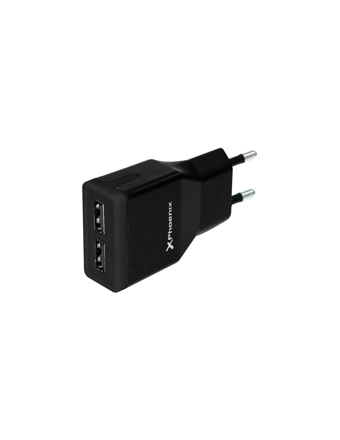 Cargador 2* USB TOTAL 2A incluye cable USB a Micro USBEl cargador/adaptador de pared universal Microusbcharger+ Phoenix es súper ligero.Carga tu tablet PC, smartphone o cualquier otro dispositivo portátil y es fácil de usar, es compatible con cualquier dispositivo con voltaje de 100-240VA, 50/60 Hz.Además, el cargador es compacto para un fácil almacenamiento y transporte.Características principales:- Cargador USB UNIVERSAL para todos los cables del mercado que tengan conector USB- Carga todos tus dispositivos móviles como smartphones, tablets, MP3s, consolas, GPS, etc.- Compacto para un fácil almacenamiento y transporte.- Diseño ligero y portátil para poder usarlo en casa o donde quiera que vayas.