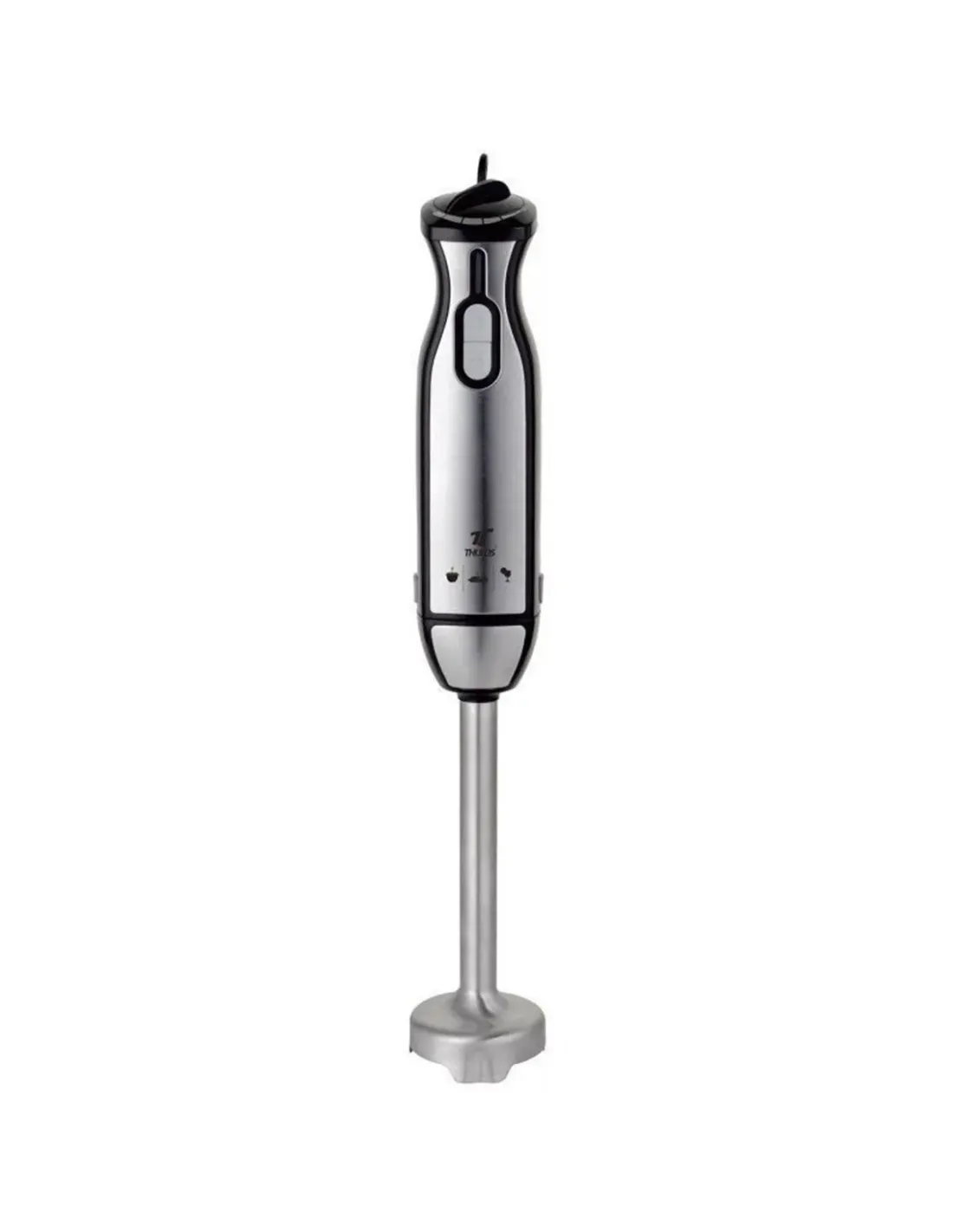 Batidora de mano cuerpo y cuchillas de acero inoxidable, 2 velocidades, función turbo, motor DC. THULOS TH-BM1000Potente y silencioso motor DCControl de velocidad variable con luz azul2 velocidades.Función Turbo.Mango ergonómico.Anilla para colgar.Interruptor de toque suave.Cuerpo de acero inoxidable.Cuchillas de acero inoxidable.Varilla de acero inoxidable extraíble mediante pulsador.Vaso medidor de 600 ml con tapa.Potencia: 1000W.Voltaje: 220-240V~50/60Hz.