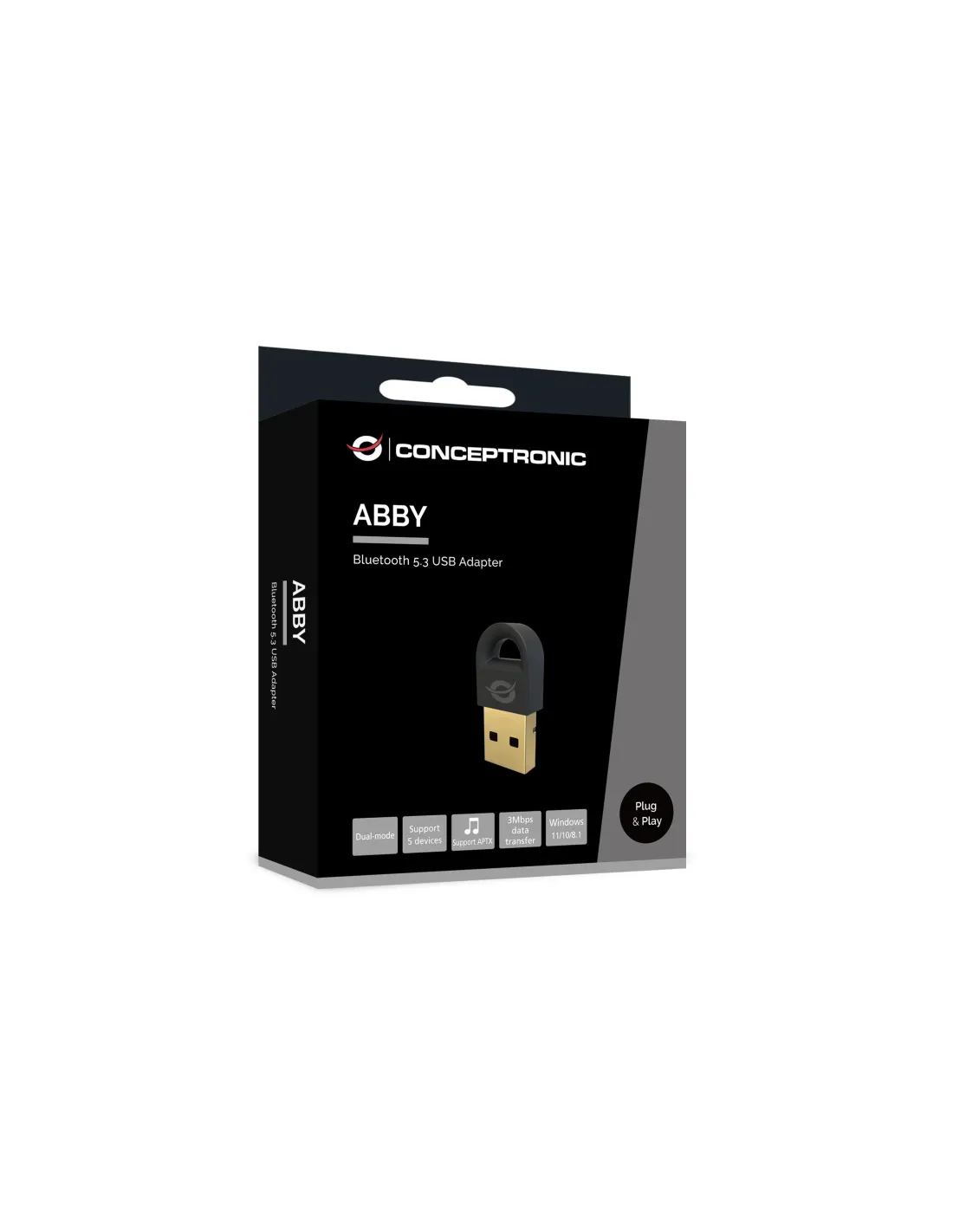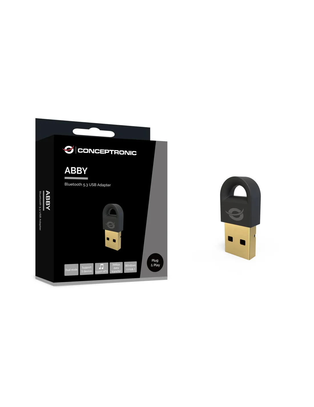 Bluetooth versión 5.3Bajo consumo de energíaDistancia de trabajo: 20 metrosVelocidad de transferencia de datos de hasta 3MbpsCompatible con Bluetooth 5.1/5.0/4.0/3.0/2.1Conecta hasta 5 dispositivos Bluetooth diferentes simultáneamenteInstalación sencilla Plug and PlayGeneralColor: NegroEAN: 4015867236277Número de modelo: ABBY16BCaracterísticas: Rango de frecuencia: 2,4 GHz (2402-2480 MHz)Aprobación y Cumplimiento: CE, RoHSTemperatura de funcionamiento: -30C ~ 45CSistemas operativos compatibles: Win 8.1, Win 10, Win 11contenidos del paquete: ABBY16B, Guía de instalación rápida multilingeEspecificaciones físicasDimensiones (Ancho x Fondo x Alto): 7x15x30mmPeso del producto (kg): 0.00245Especificaciones del SistemaPIRE (dBm): 8Rango de operación: 0 ~ 20m