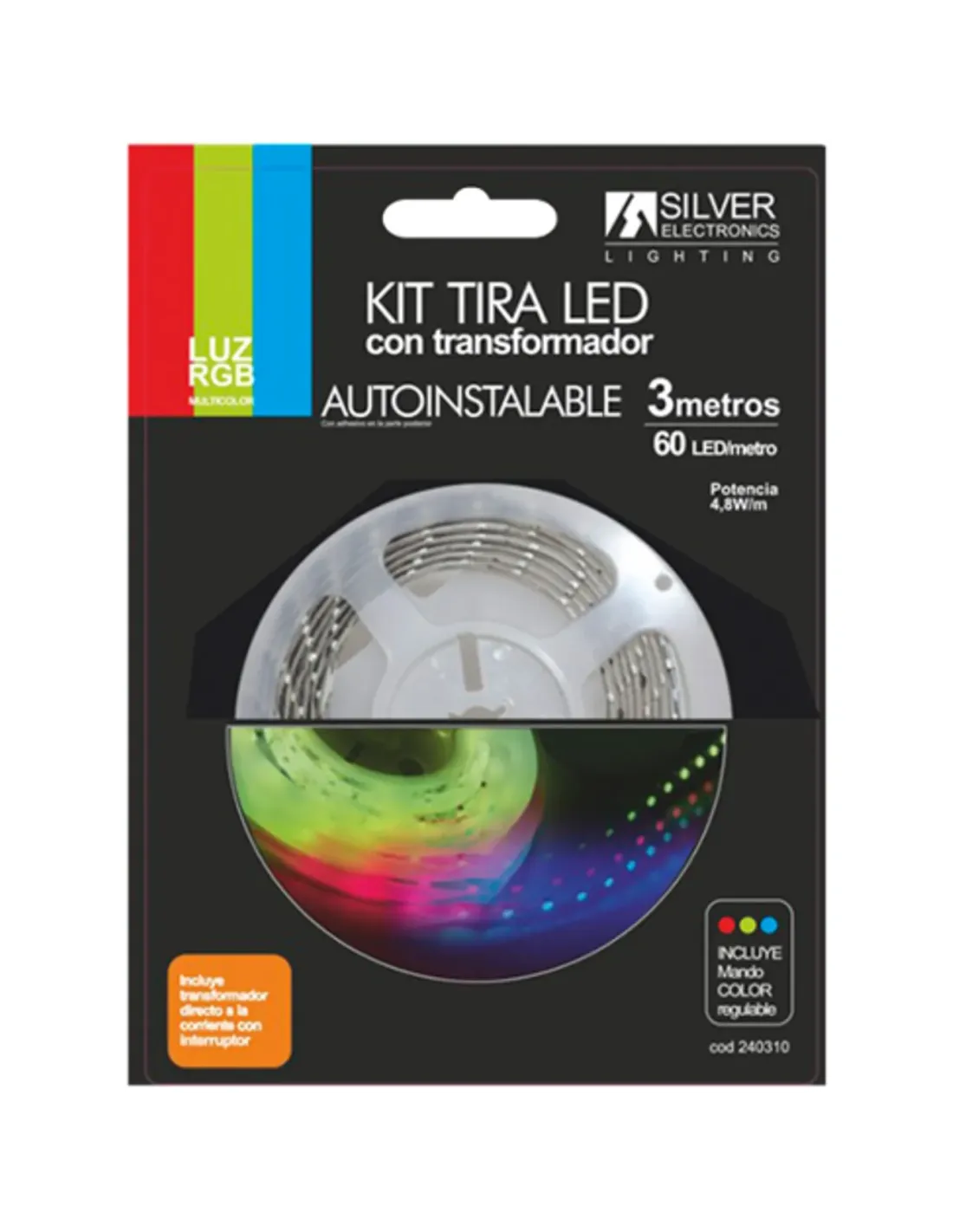 Silver Electronics KIT tira LED 3m 7,2W/m RGB, Interior, Blanco, IP20, Azul, Verde, Rojo, 60 bombilla(s), LED