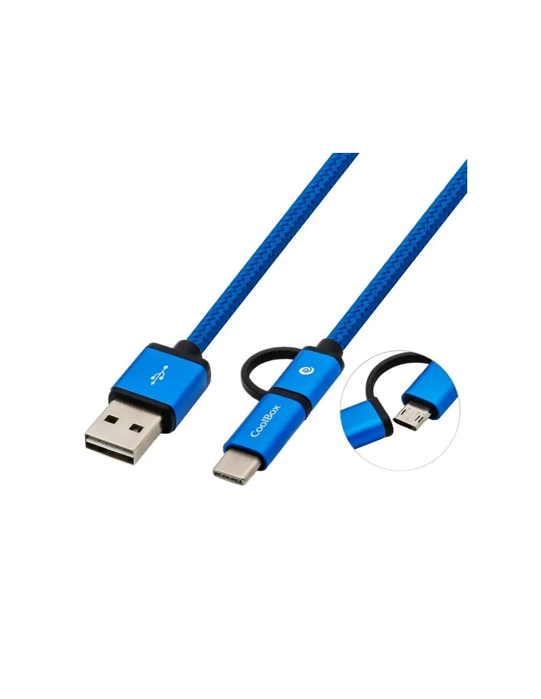 CoolBox COO-CAB-U2MC-BL, 1 m, USB A, USB C/Micro-USB B, USB 2.0, 480 Mbit/s, Azul